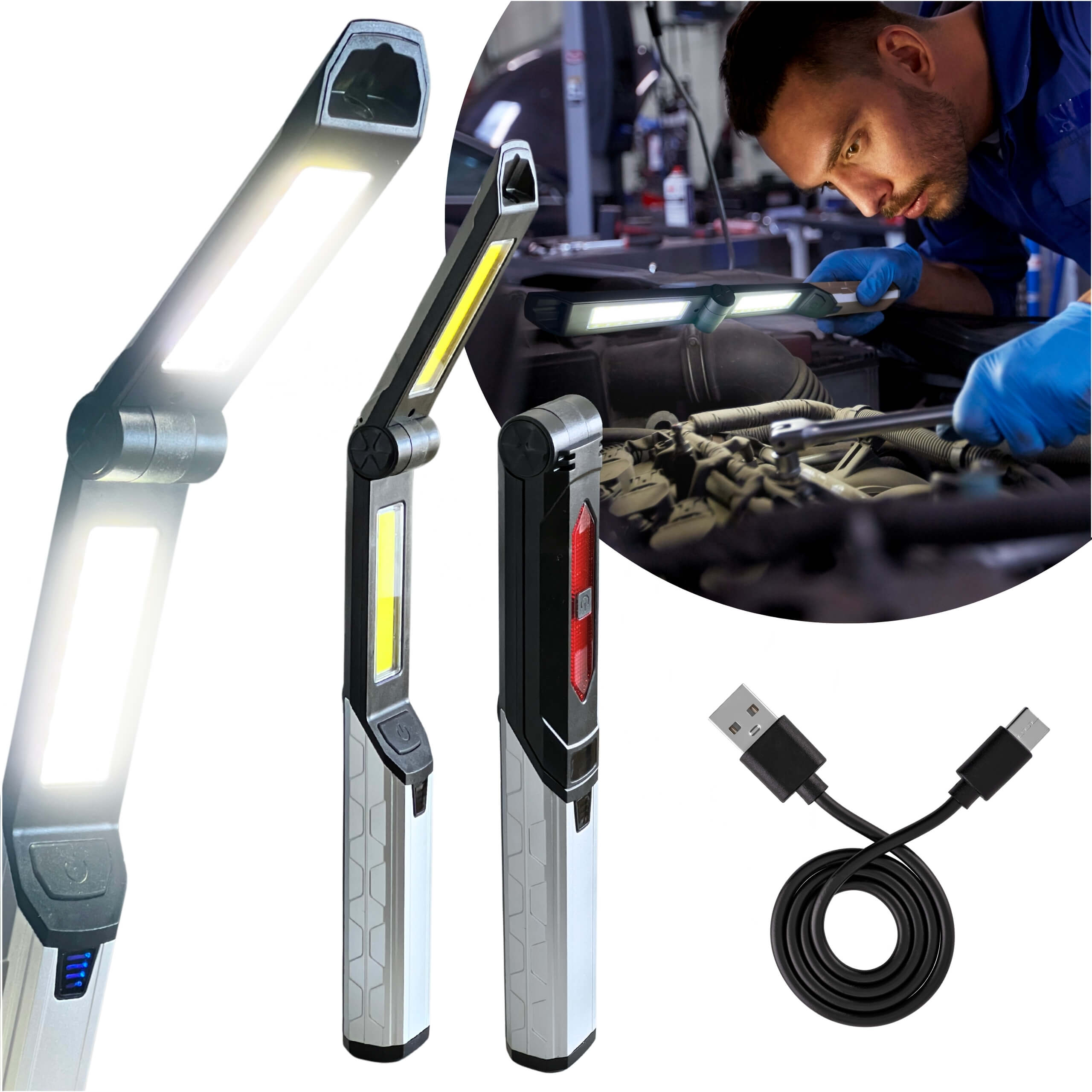 Linterna - Recargable 4 en 1, Lámpara LED de camping para taller de coches BLIXTAR, Negro