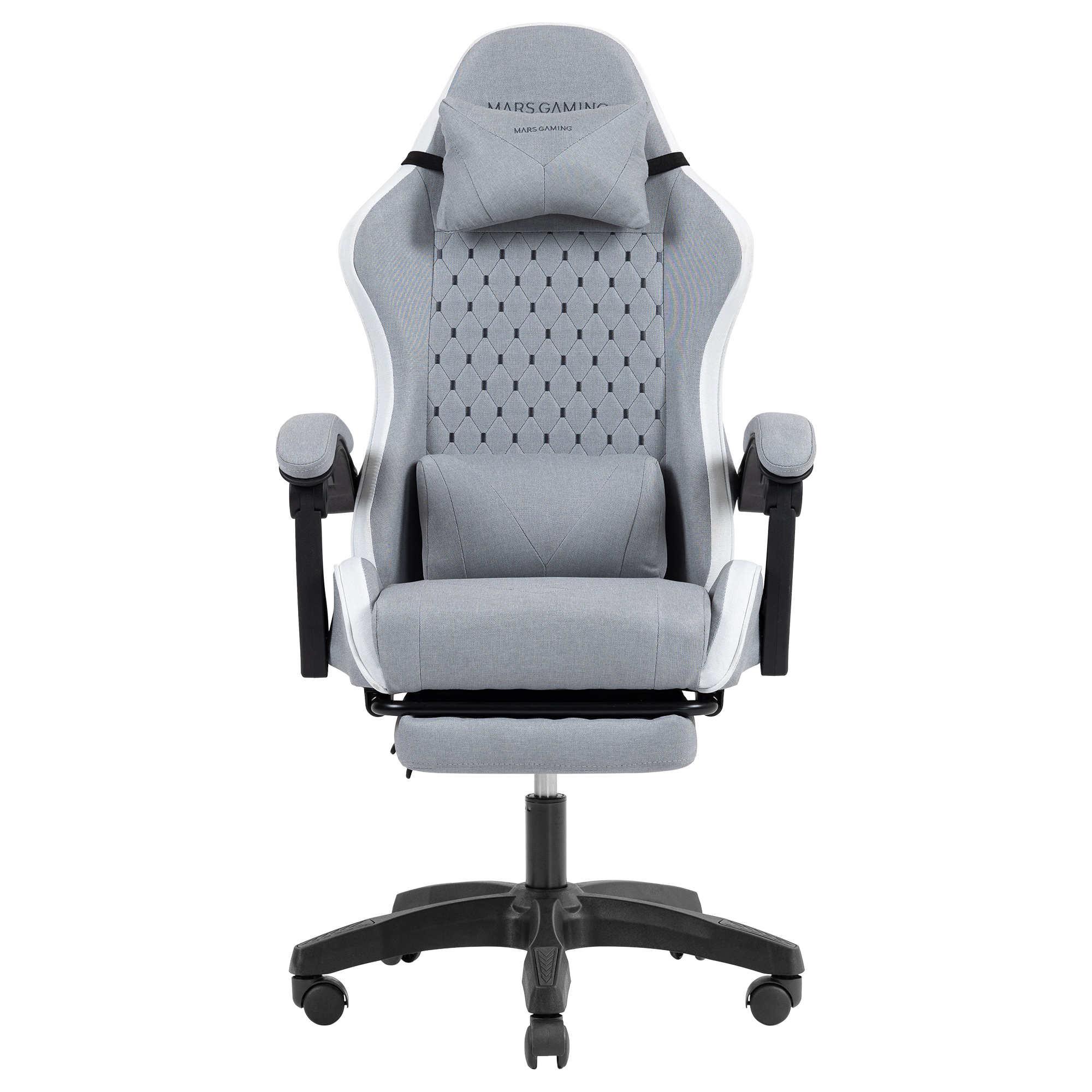 1x Silla Gaming - 1x Reposa cabezas - 2x Reposa brazos 4D - 1x Base de aluminio - 5x Ruedas de PU - 1x Pistón hidráulico - 1x Mecanismo de inclinación - 1x Kit de tornillería y herramientas