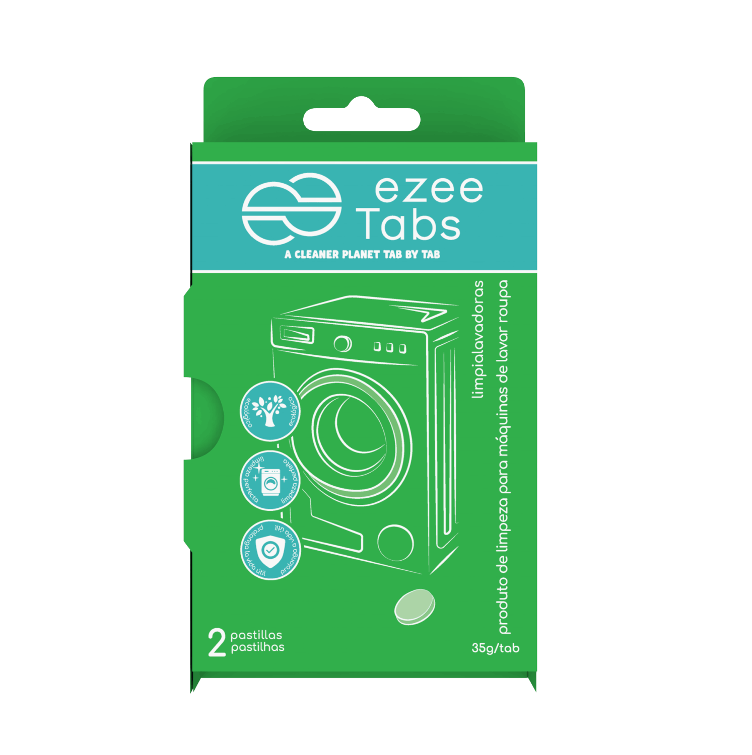 Limpiador - Ezeetabs, Para lavadoras, 2 pastillas, 35 gr, Verde