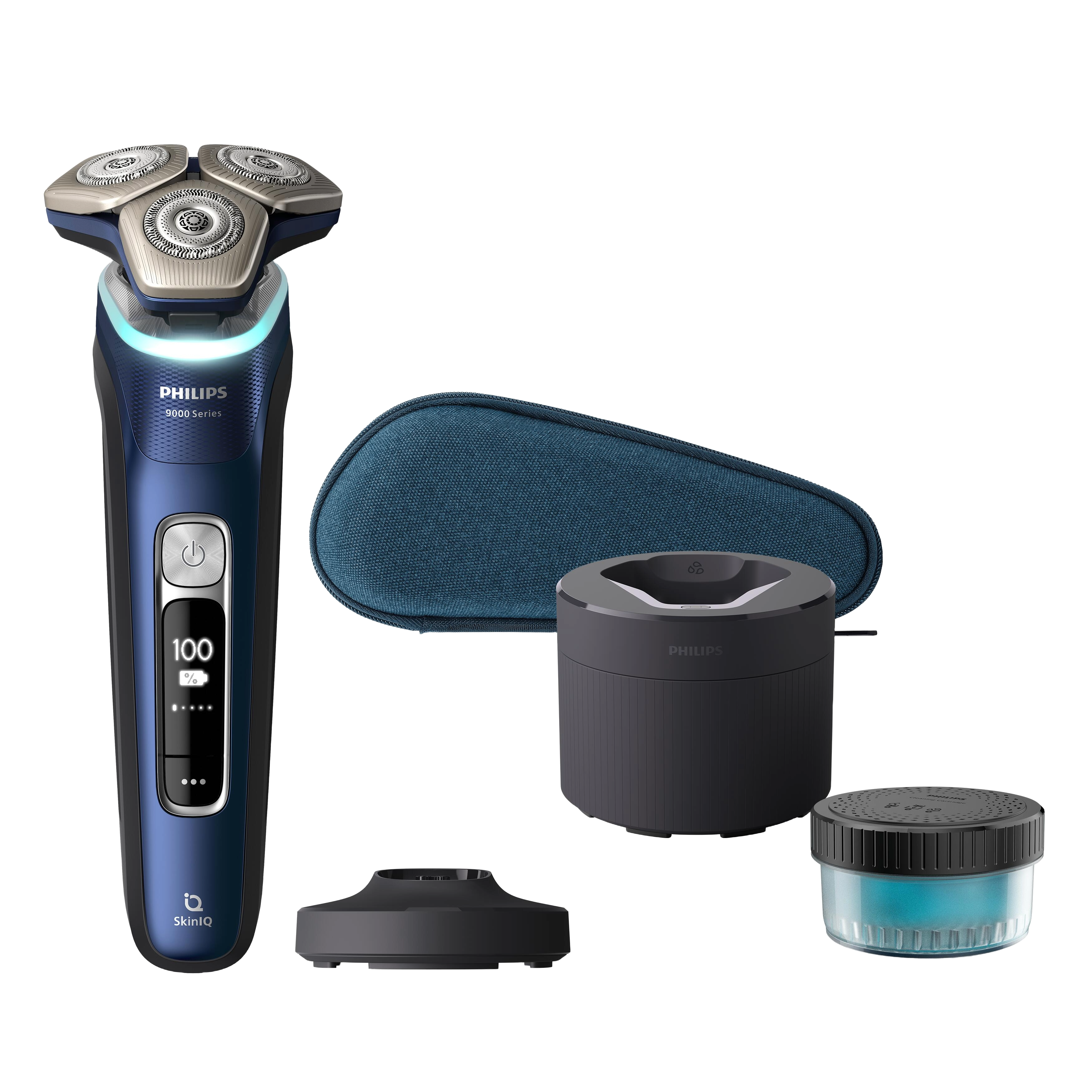 1x Afeitadora, 1x Cartucho limpieza, 1x Funda Premium, 1x Soporte de carga, 1x Cabezal