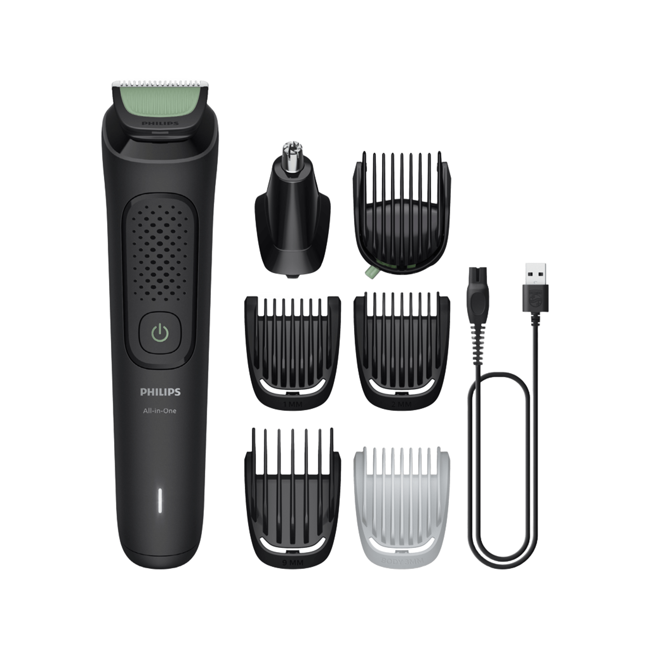 Afeitadora corporal - Philips MG3935/15 ALL IN ONE, 7, Recortadora 7 en 1, Cuerpo y Barba, Uso en seco/húmedo, Autonomía 70 min., Negro