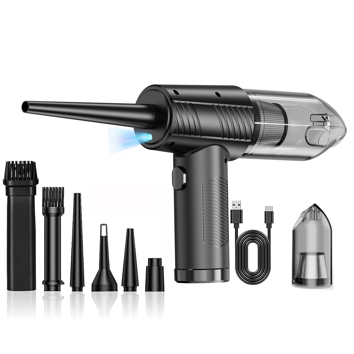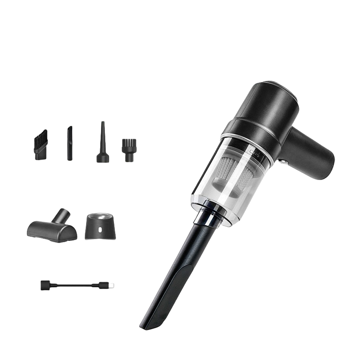 Aspirador de Mano - KINSI C1503B, 2 en 1, 68 W, Potencia de succión 6 kPa, Depósito 100 ml, Negro