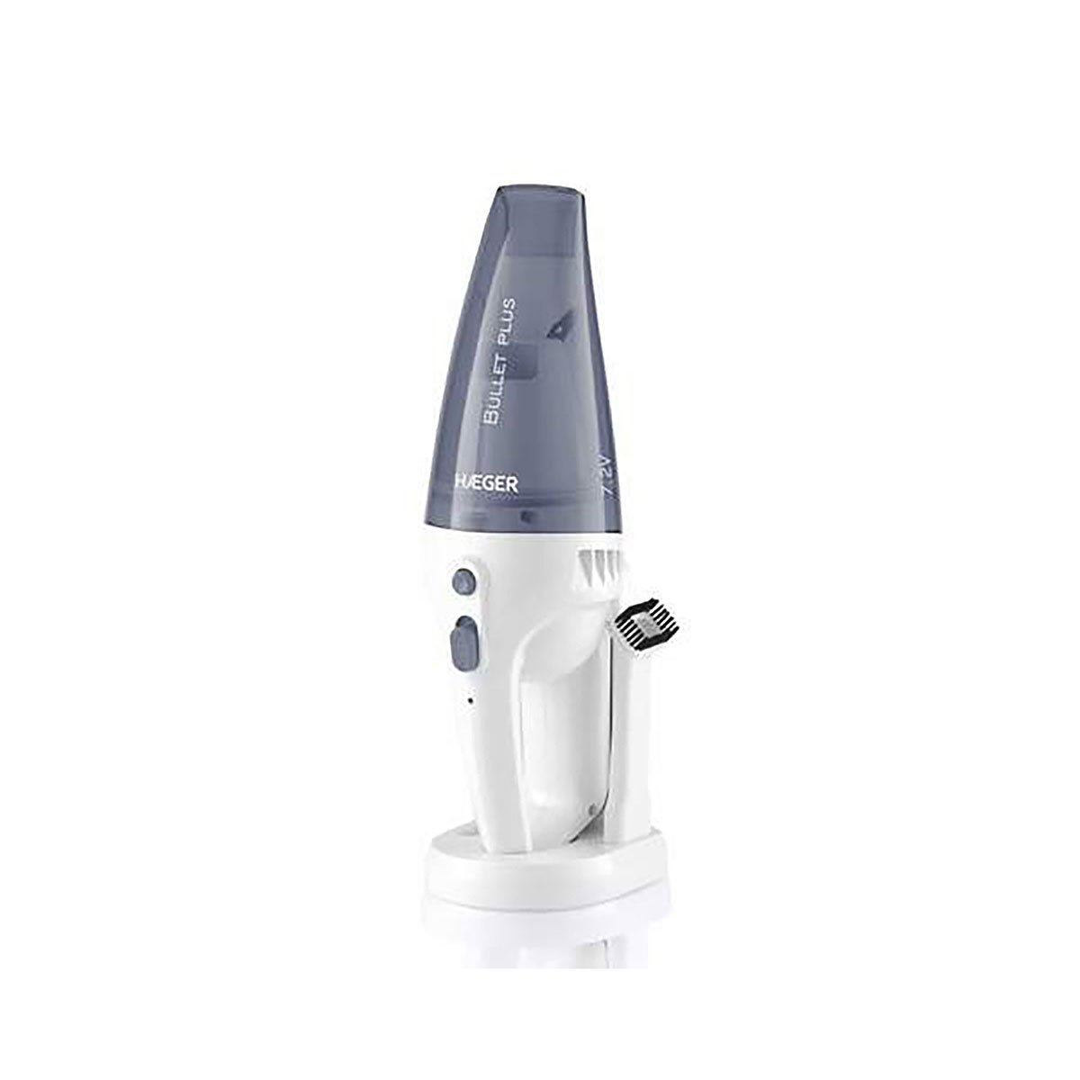 Aspirador de mano - HAEGER BULLET PLUS, 45 W, Potencia de succión 2100 kPa, Depósito 0,5 l, Autonomía 150 Min., Blanco e Gris