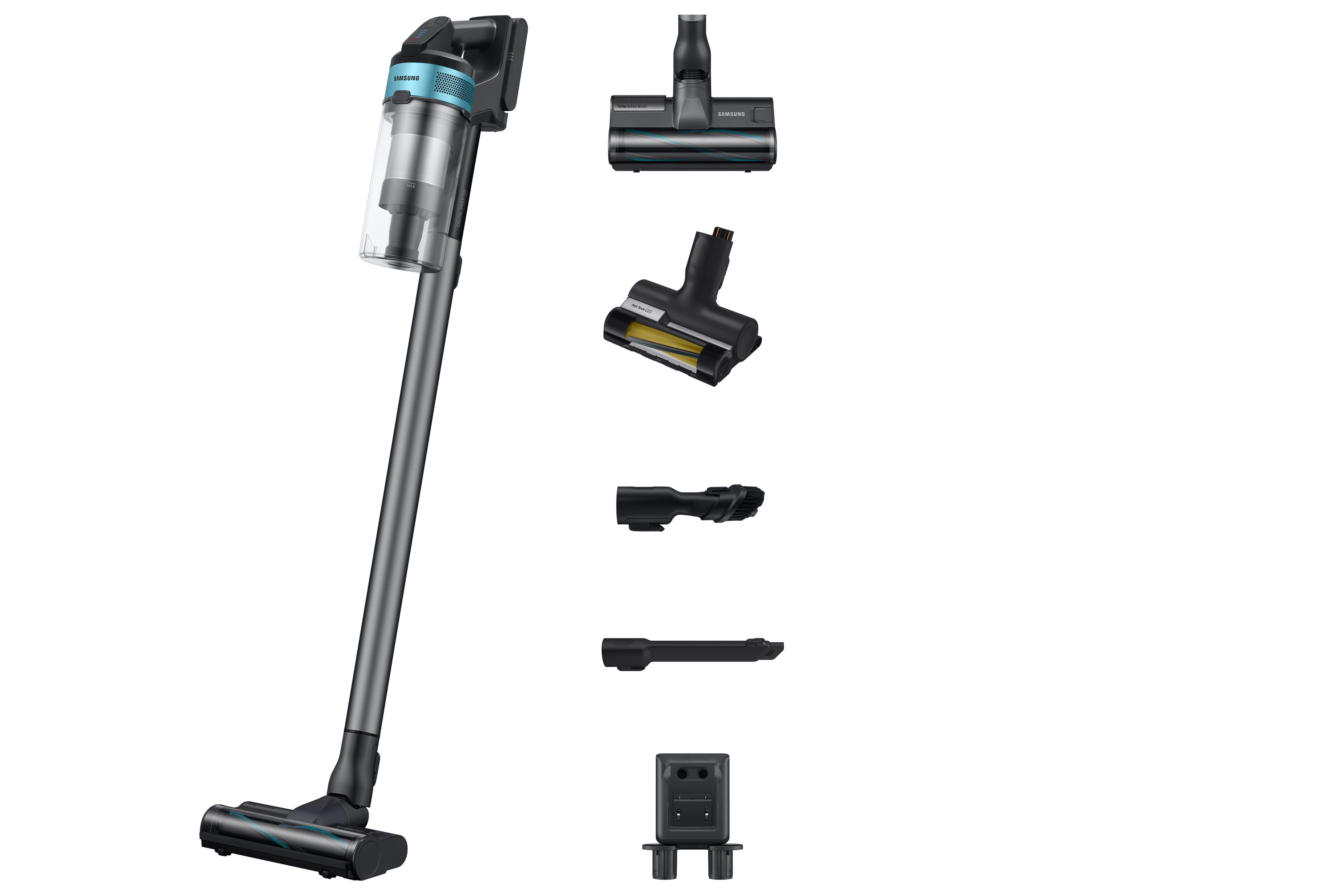 Aspirador escoba - Samsung VS20B75AGR1/WA Jet 75E Pet, Sin cable, 200 WA, Multi Cyclone, 60 min, Black Chrometal & Teal Mint