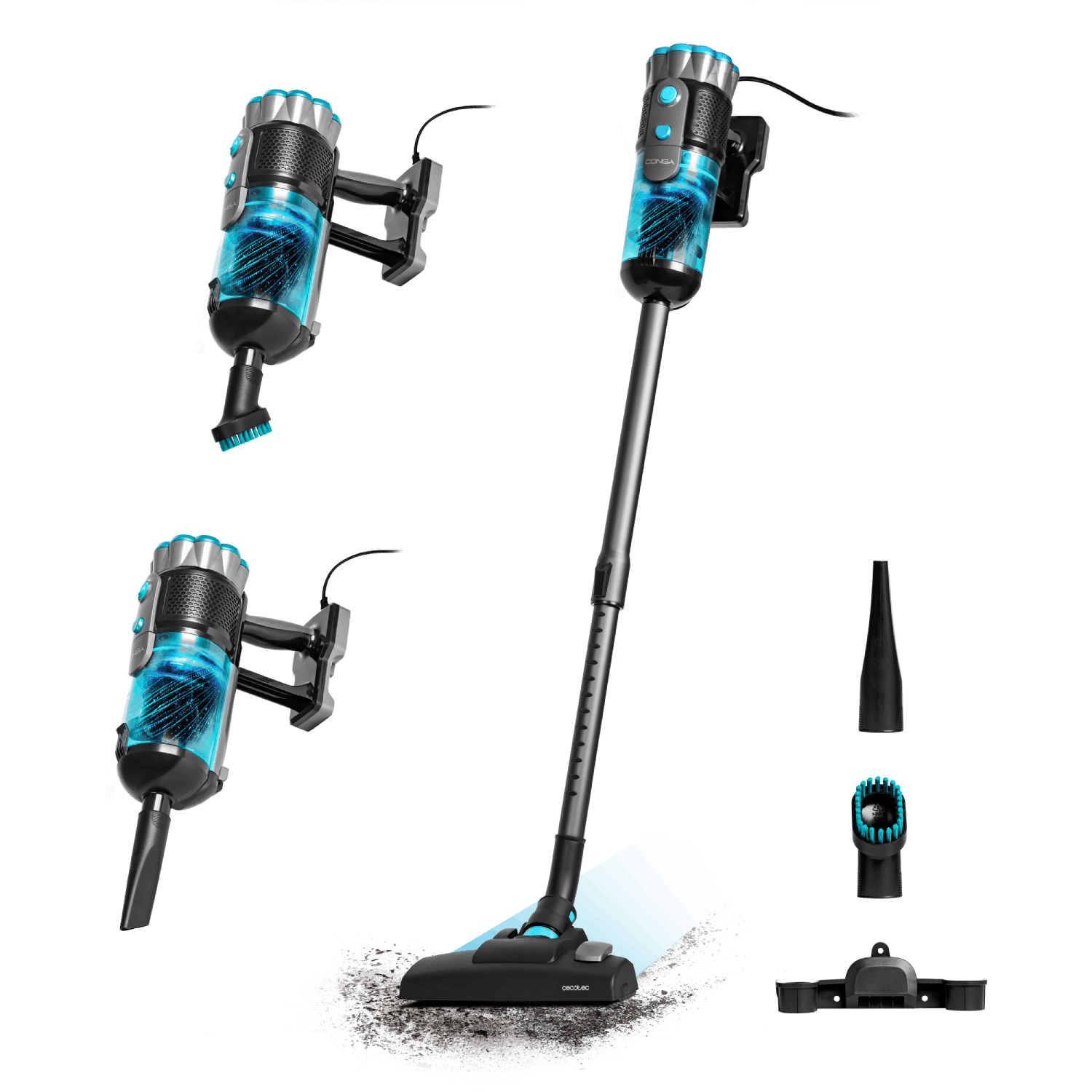 Aspirador escoba - Cecotececotec Conga Rockstar P50, 265 W, 50 min Autonomía, Filtro HEPA, Succión de 80 AW, Negro/Azul