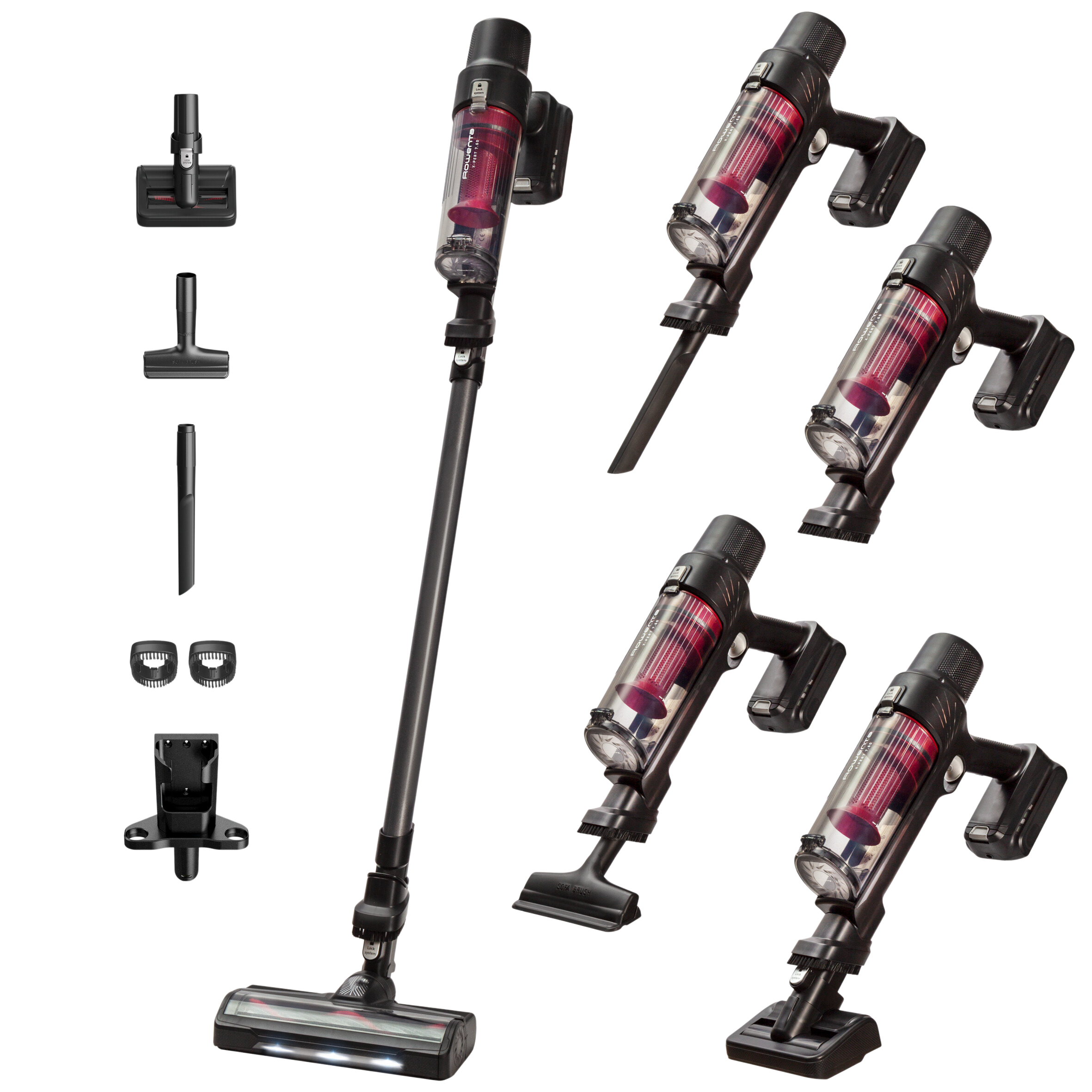 Aspirador escoba - Rowenta RH6A75WO X-Pert 7. 60 Animal Care, 140 W, 0.44 L, 45 min, Ligera, Multisuperficie, Especial mascotas, Rojo