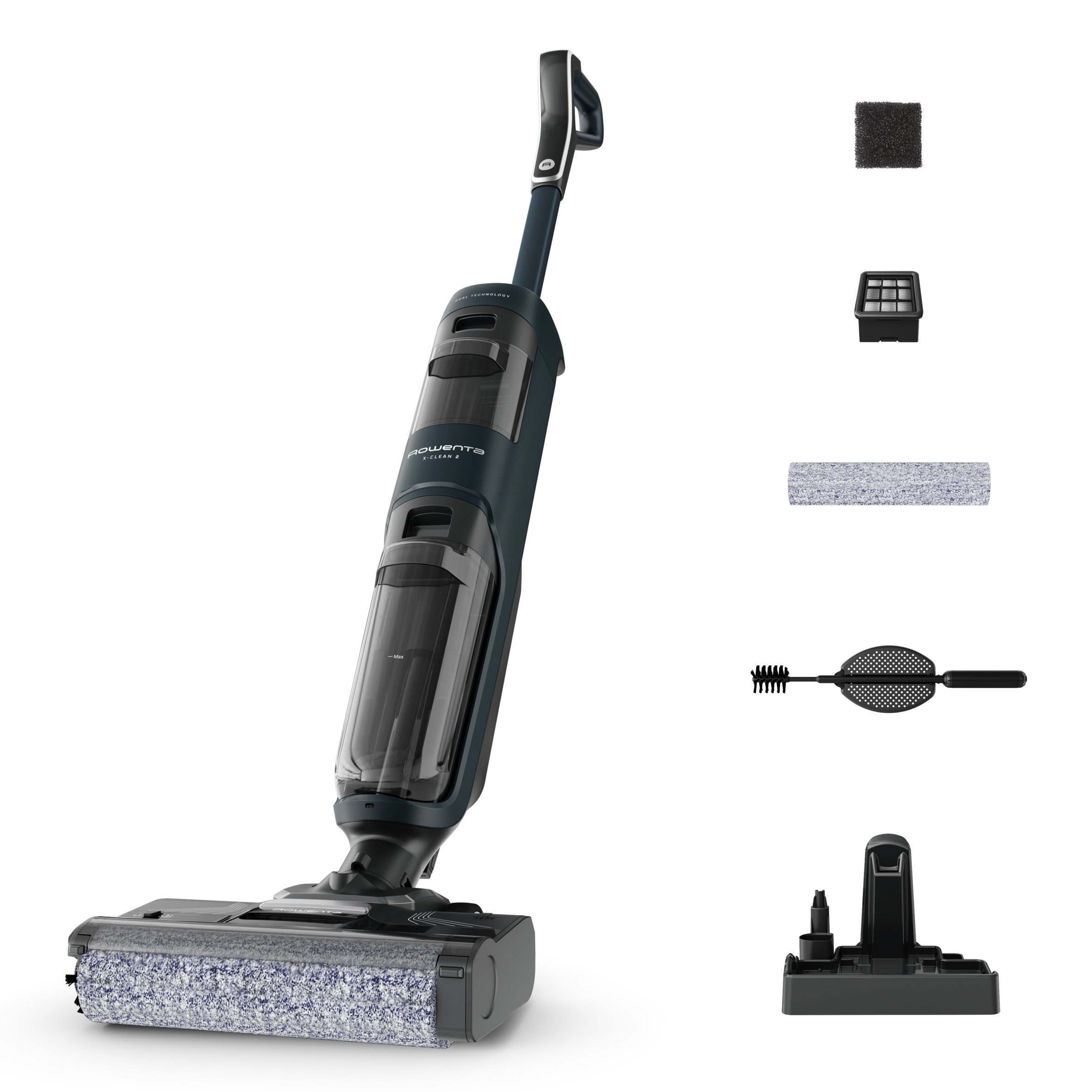 Fregona eléctrica - Rowenta X-Clean 2 GZ2251, Wet & dry, 35 min autonomía, Modos ECO/MAX, Ligera, 2 en 1, Aspira y friega, Autolimpieza, 120 W, Negro