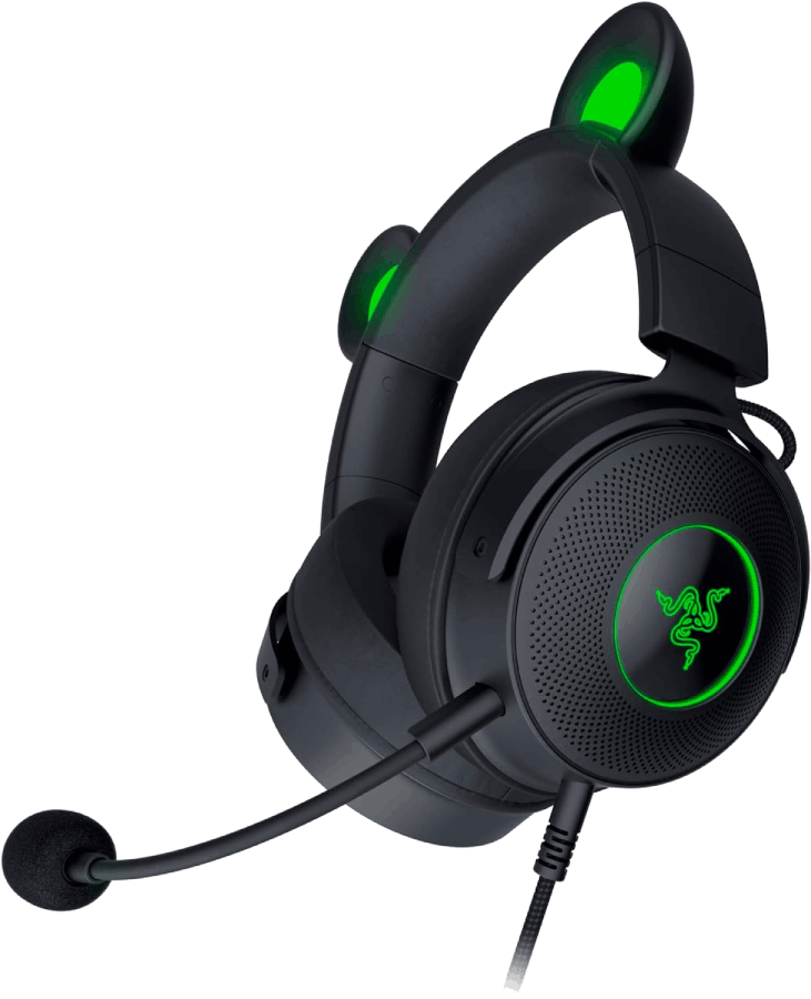 Auriculares gaming - Razer Kraken Kitty V2 Pro, Cancelación ruido pasiva, Orejas intercambiables, Micrófono integrado, Negro