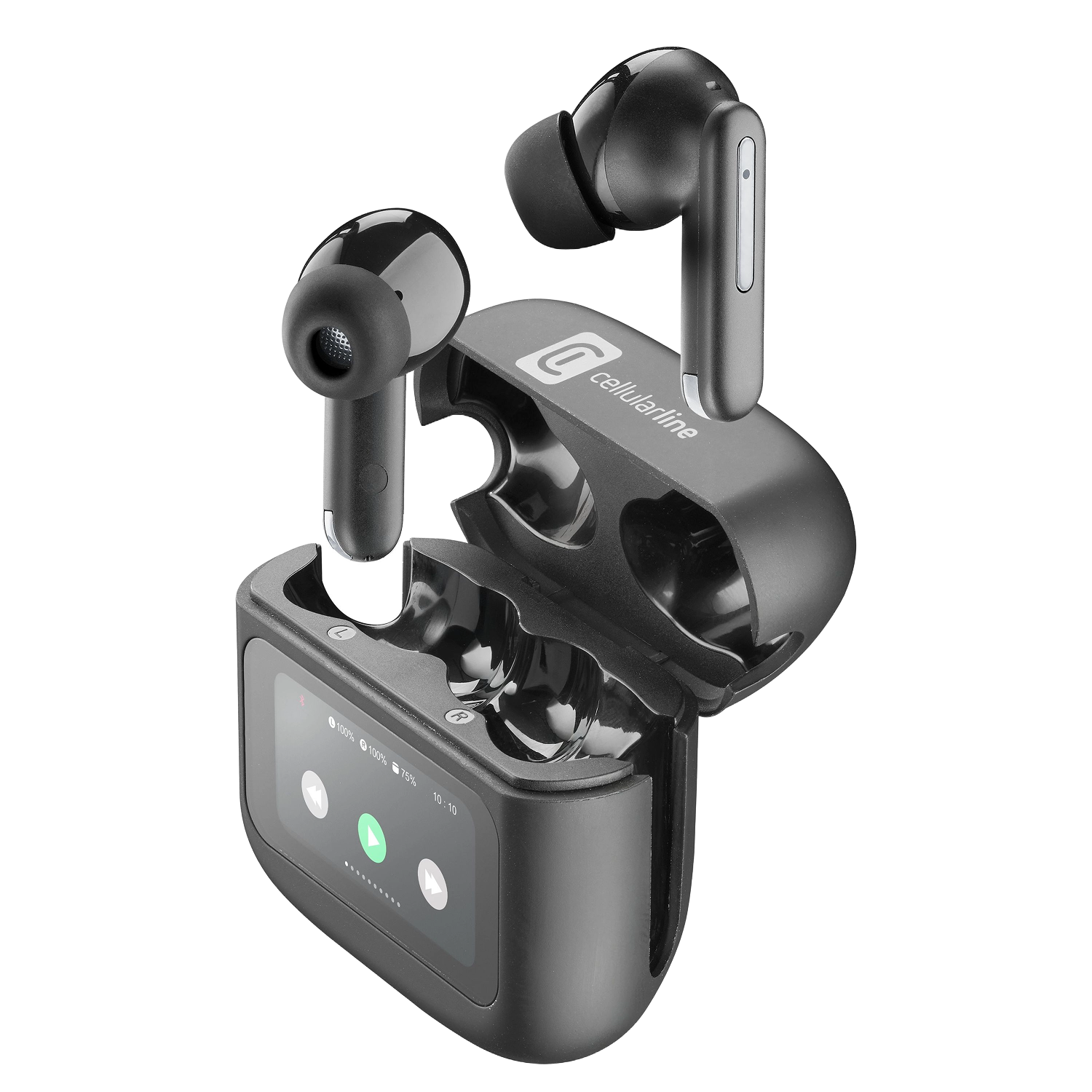 Auriculares True Wireless - CellularLine HUSH, Universal, Pantalla Táctil y Ecualizador, 42 h de reproducción, con tecnología ANC y ENC, Negro