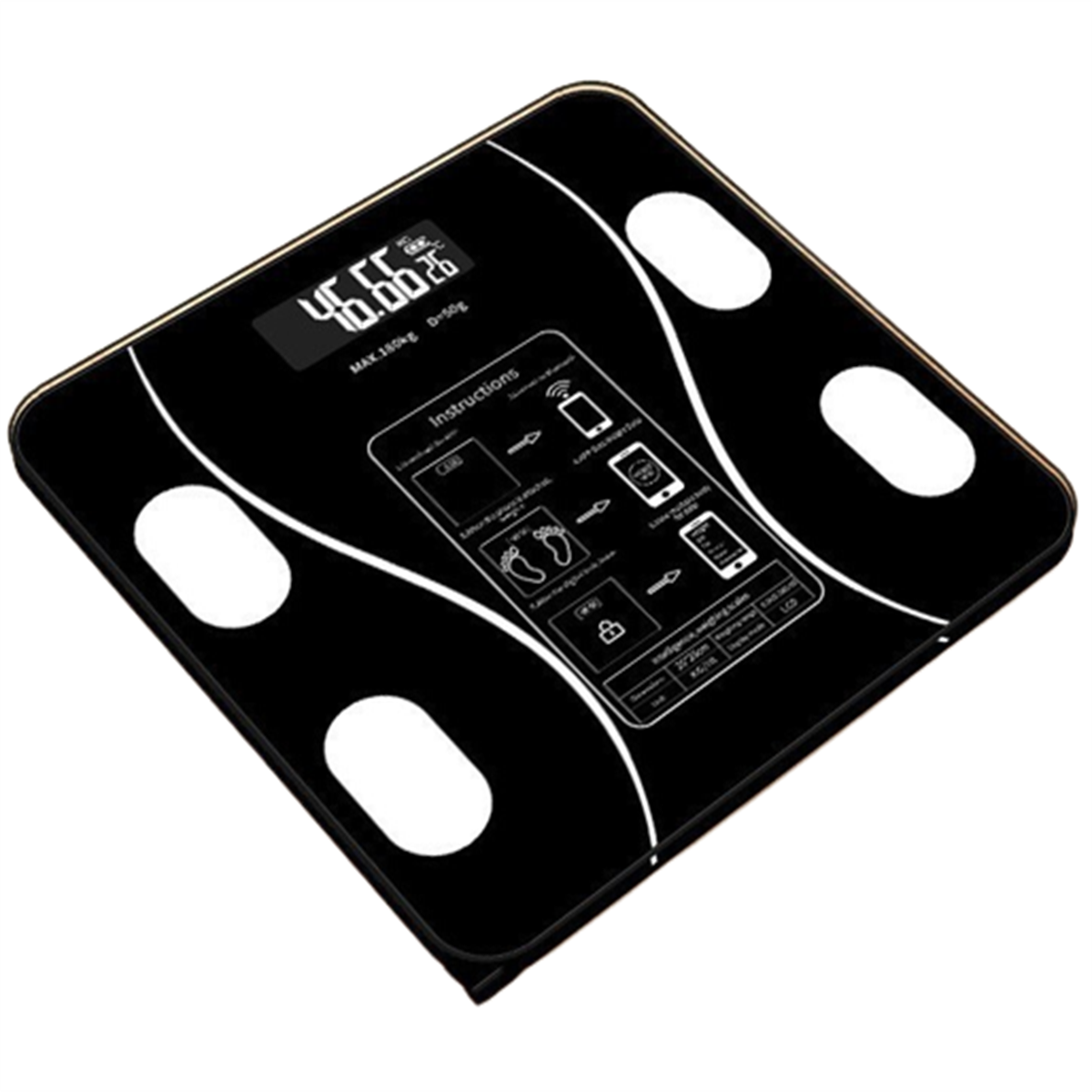 Báscula de baño - SYNTEK Báscula electrónica inteligente Báscula de peso Báscula de grasa corporal, 180 kg, Negro