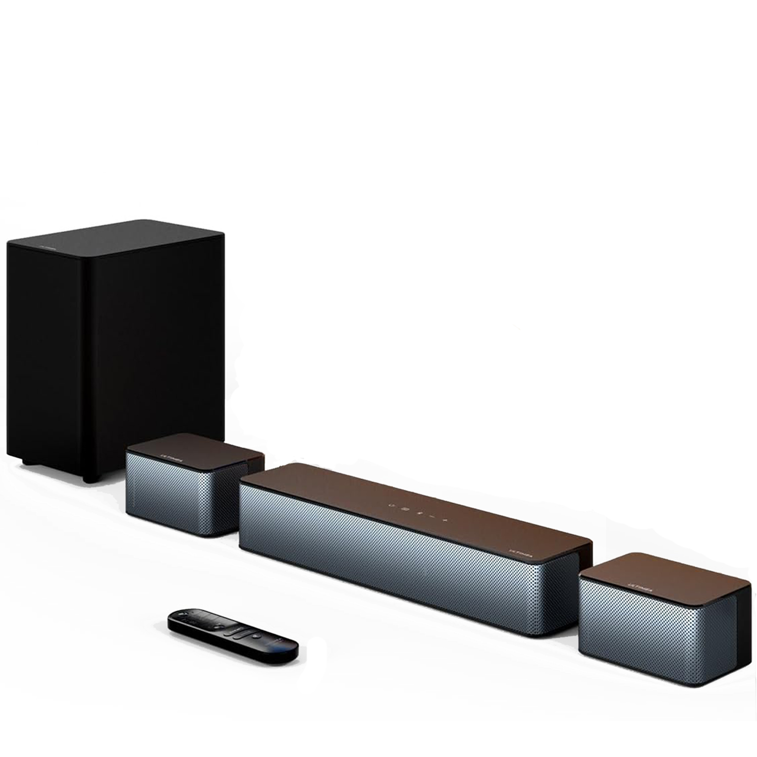1x Barra de sonido, 1x Subwoofer inalámbrico 10", 2x Altavoz envolvente