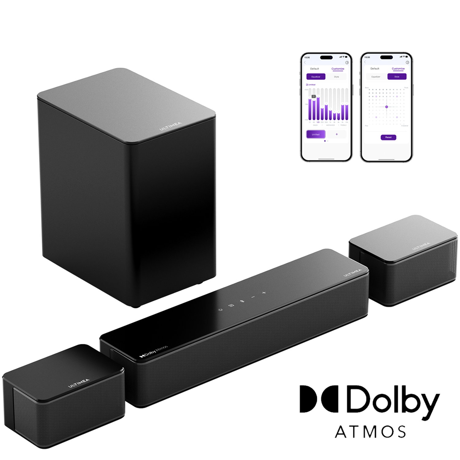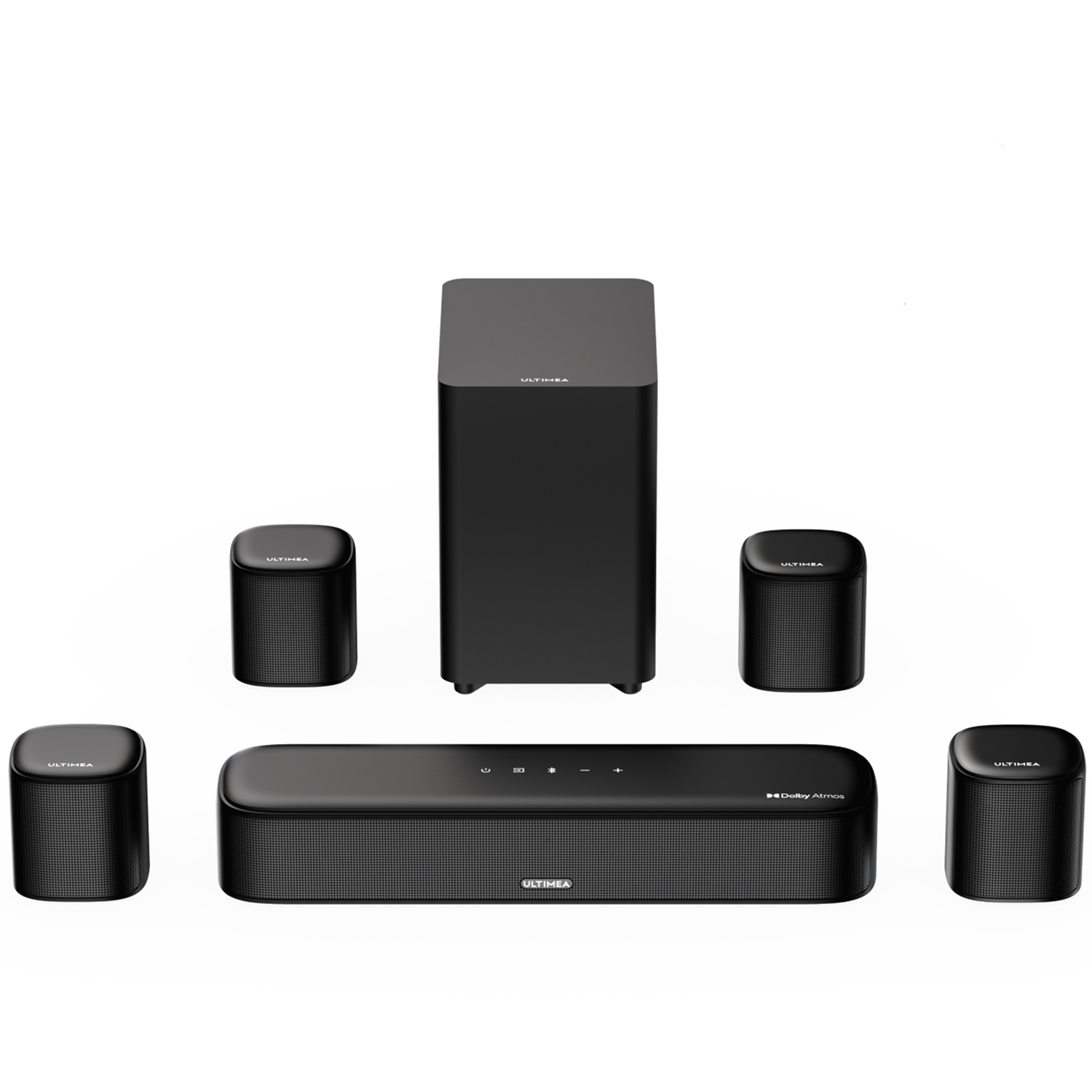 Barra de sonido con subwoofer - ULTIMEA Poseidon M60 Boom 5.1 Canales, Dolby Atmos, Control por APP, Bluetooth, Subwoofer Con cable, Black