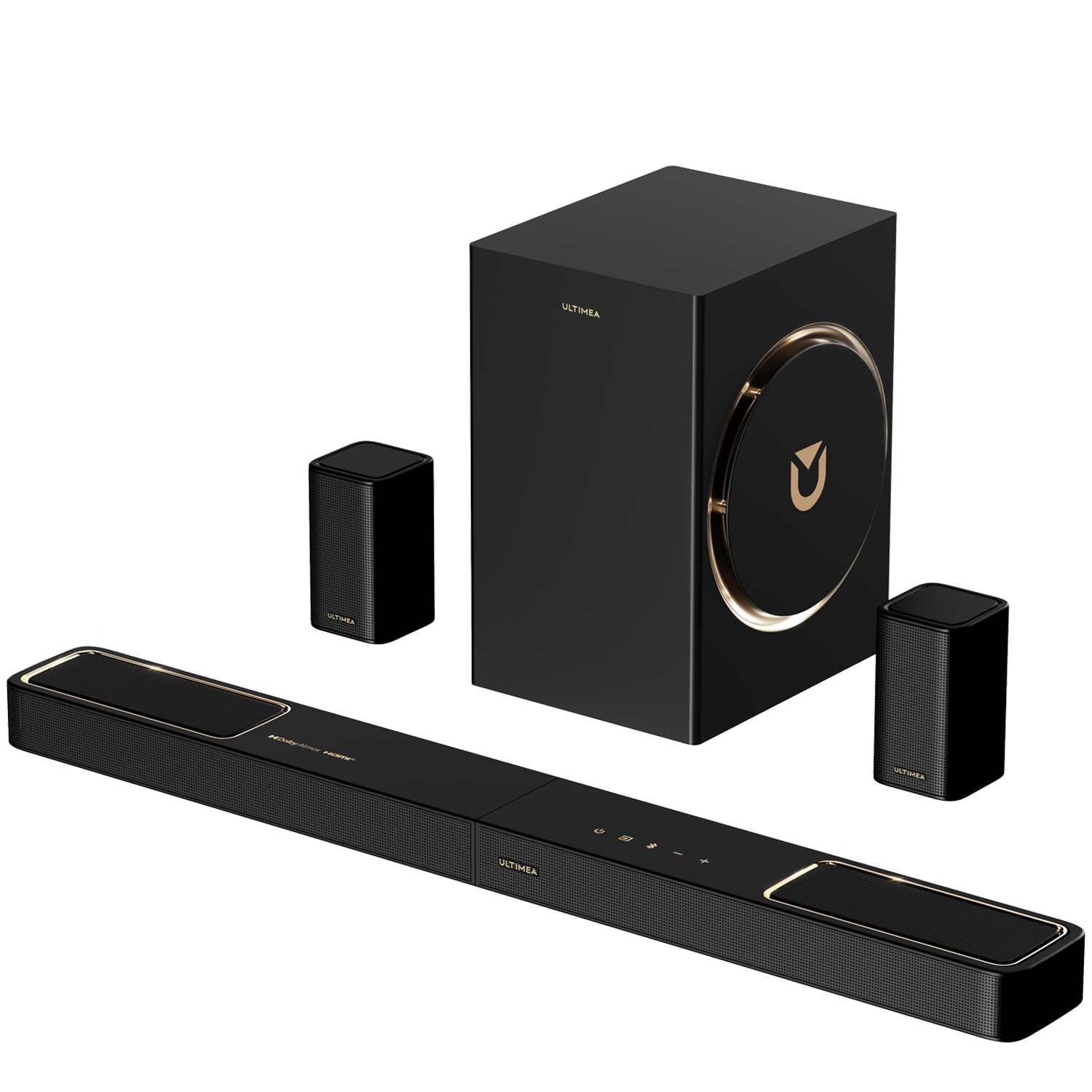 Barra de sonido con subwoofer - ULTIMEA Aura A60 - 7.1ch Barra de Sonido con Dolby Atmos y Subwoofer, Control de la APP, Bluetooth, Subwoofer Con cable, Nergro