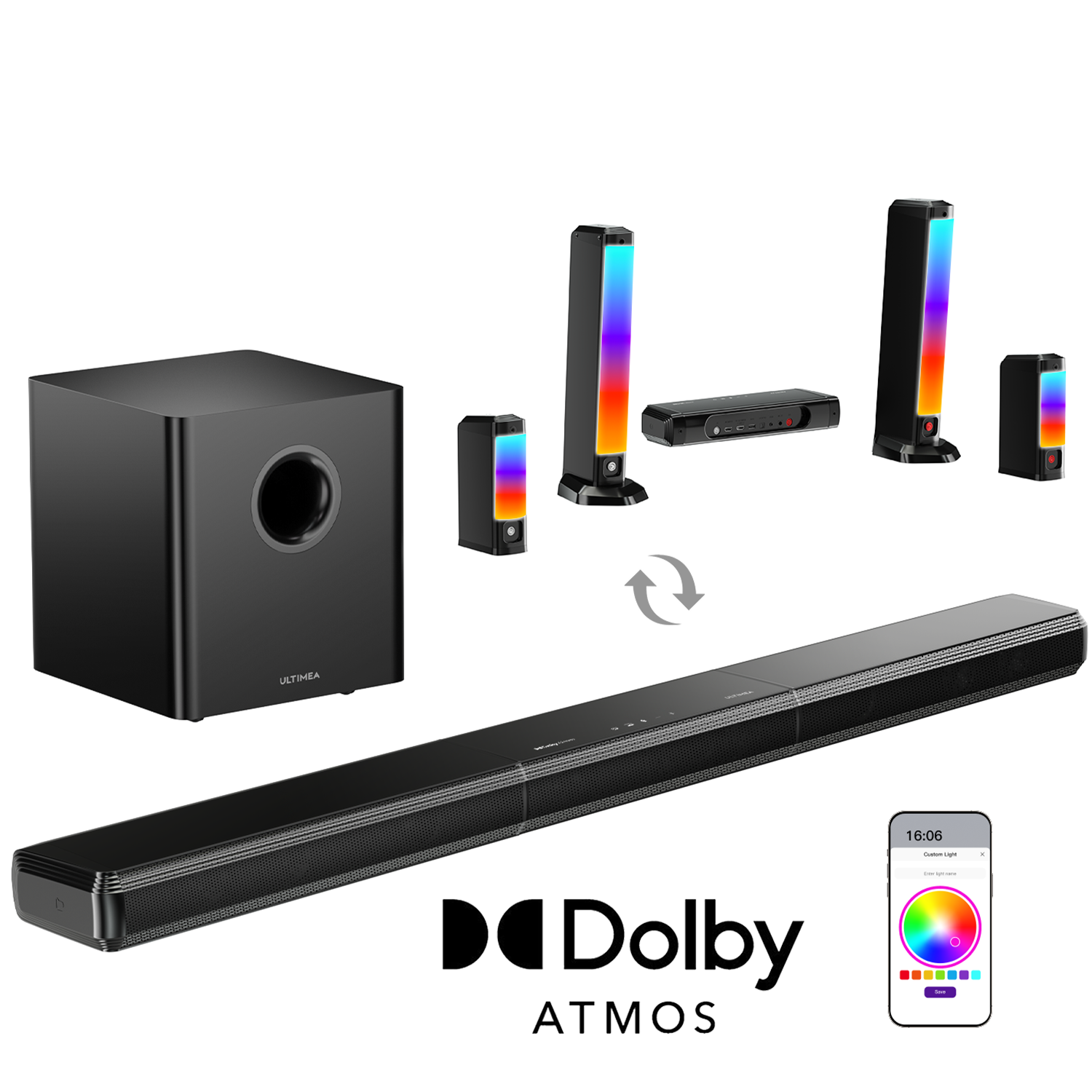 Barra de sondio con subwoofer - ULTIMEA Skywave F40 Boom - 5.1.2 Sistema de altavoces con Dolby Atmos y 6.5" Subwoofer, Control por App, Bluetooth, Subwoofer Con cable, Black
