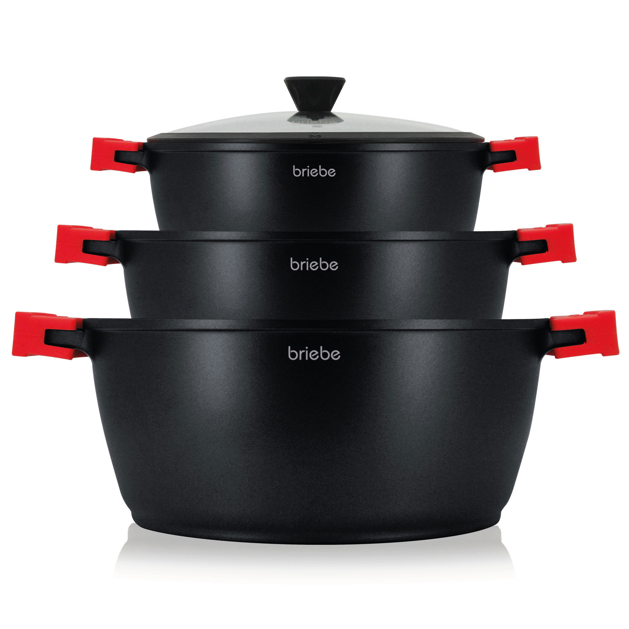 Batería de cocina - BRIEBE BLACKT3, Batería Cocina Inducción Antiadherente Titanio, 6 Piezas Aluminio Fundido 3 Ollas sin PFOA, 4 l, Aluminio Fundido, Negro