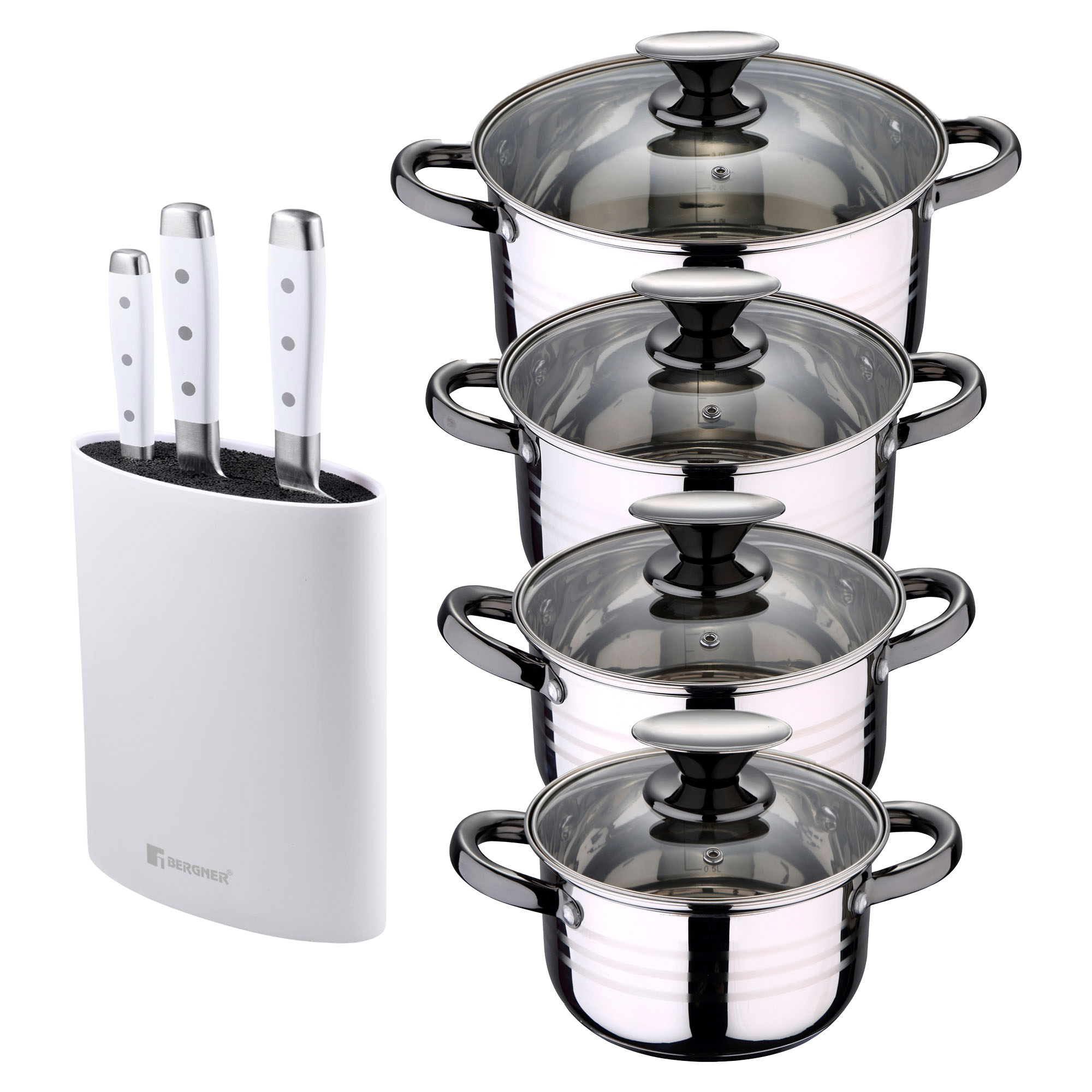 Batería de cocina - BERGNER Toledo, 3 l, Acero Inoxidable, Cromado