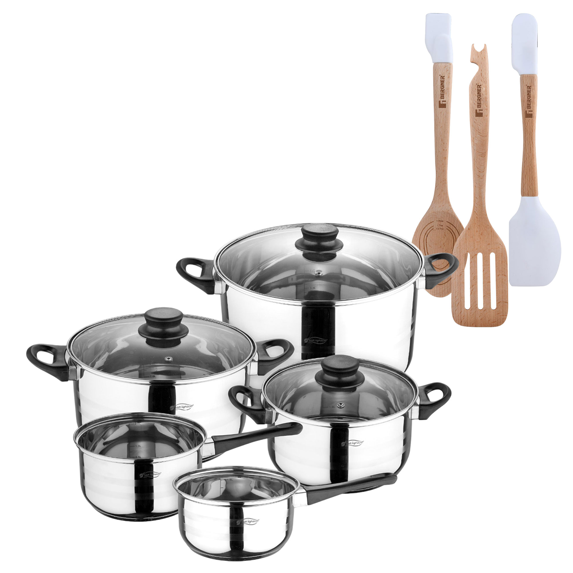 Batería de cocina - BERGNER Toledo, 3 l, Acero Inoxidable, Cromado