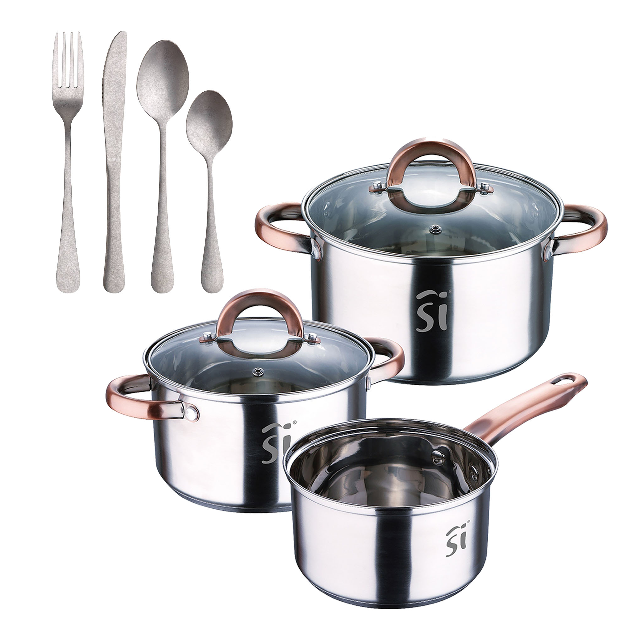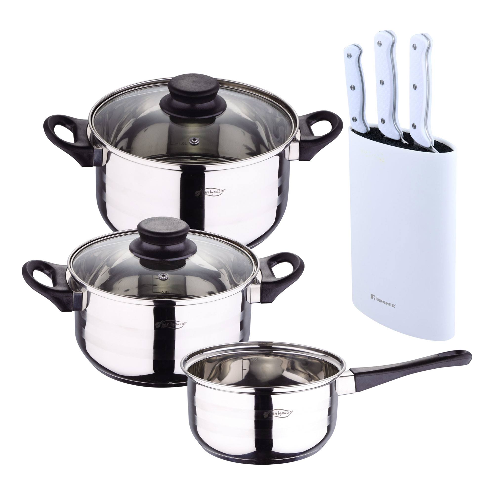1 Set de baterías de cocina + 3 Cuchillos