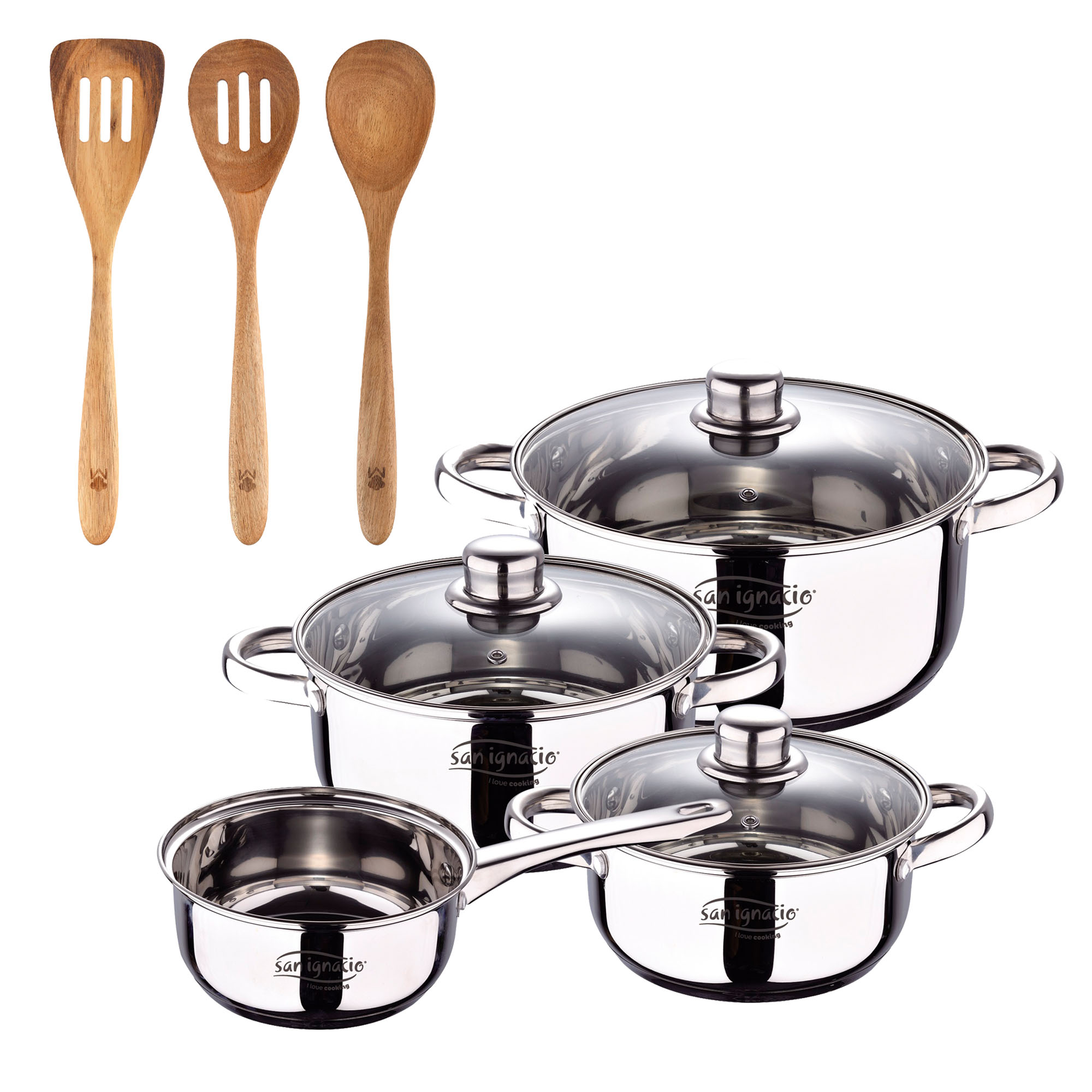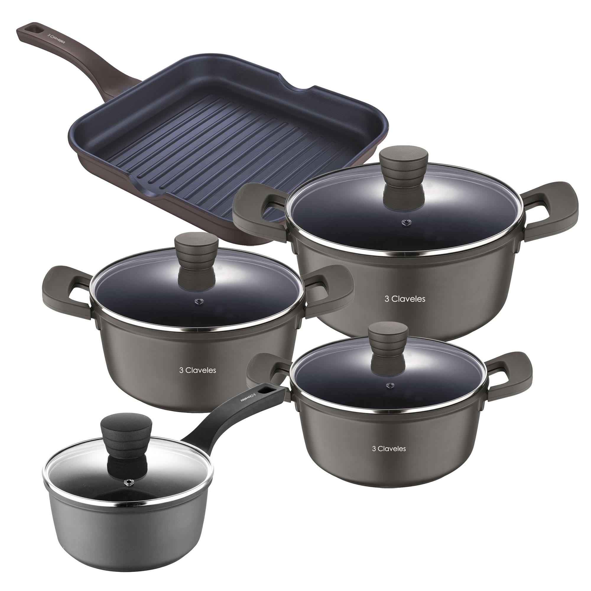 1 Juego de 3 Cacerolas y Cazo + 1 Sartén Grill
