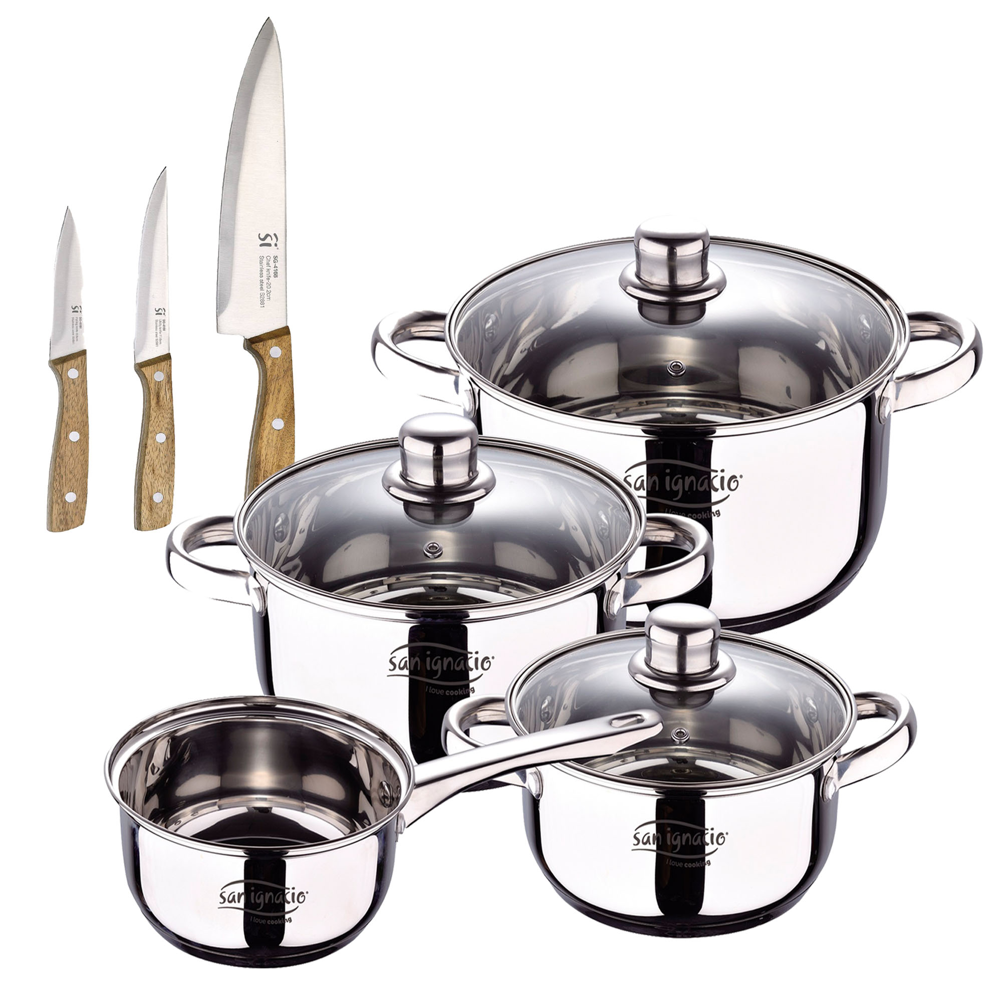 1 Set de baterías de cocina+ 3 Cuchillos + 1 Tacoma