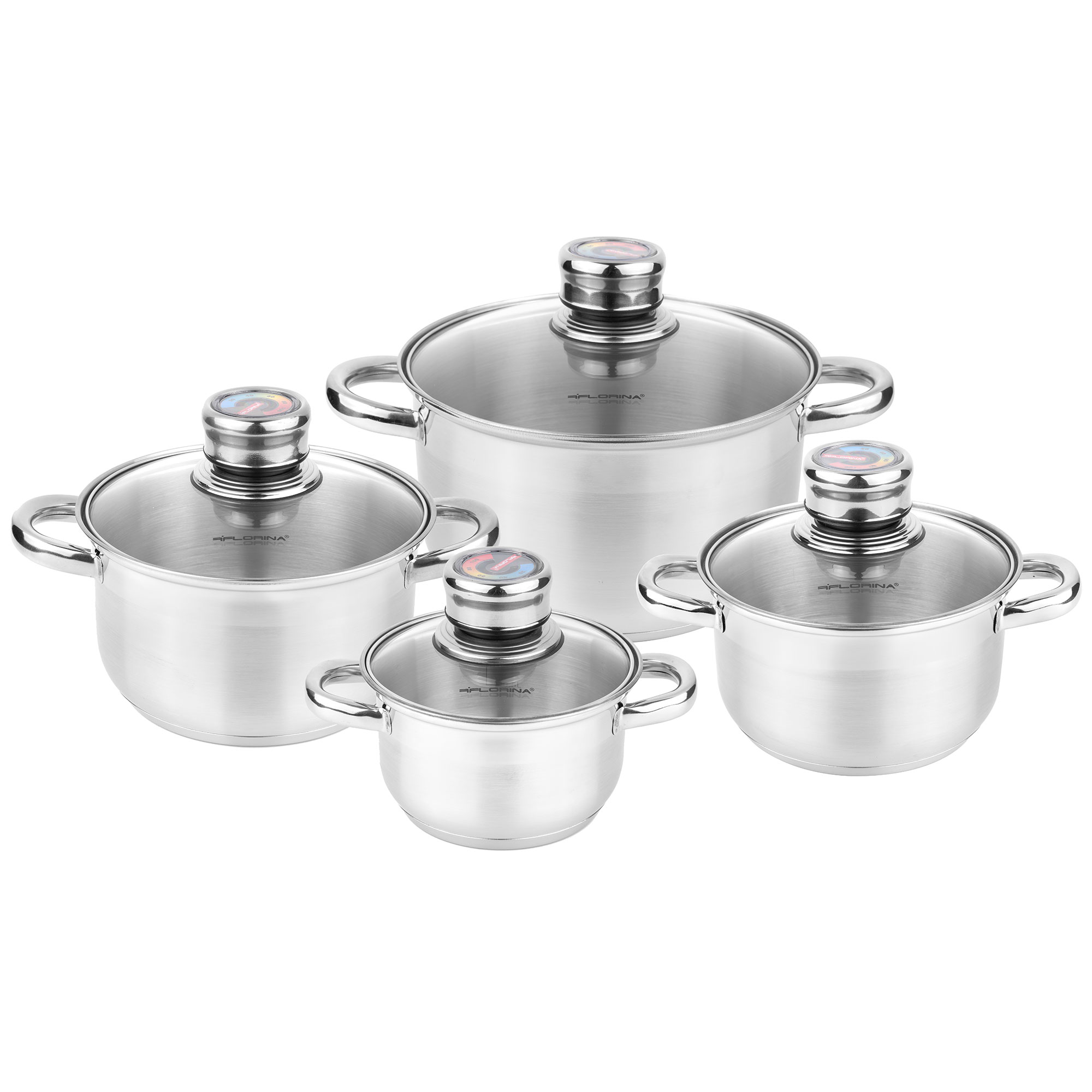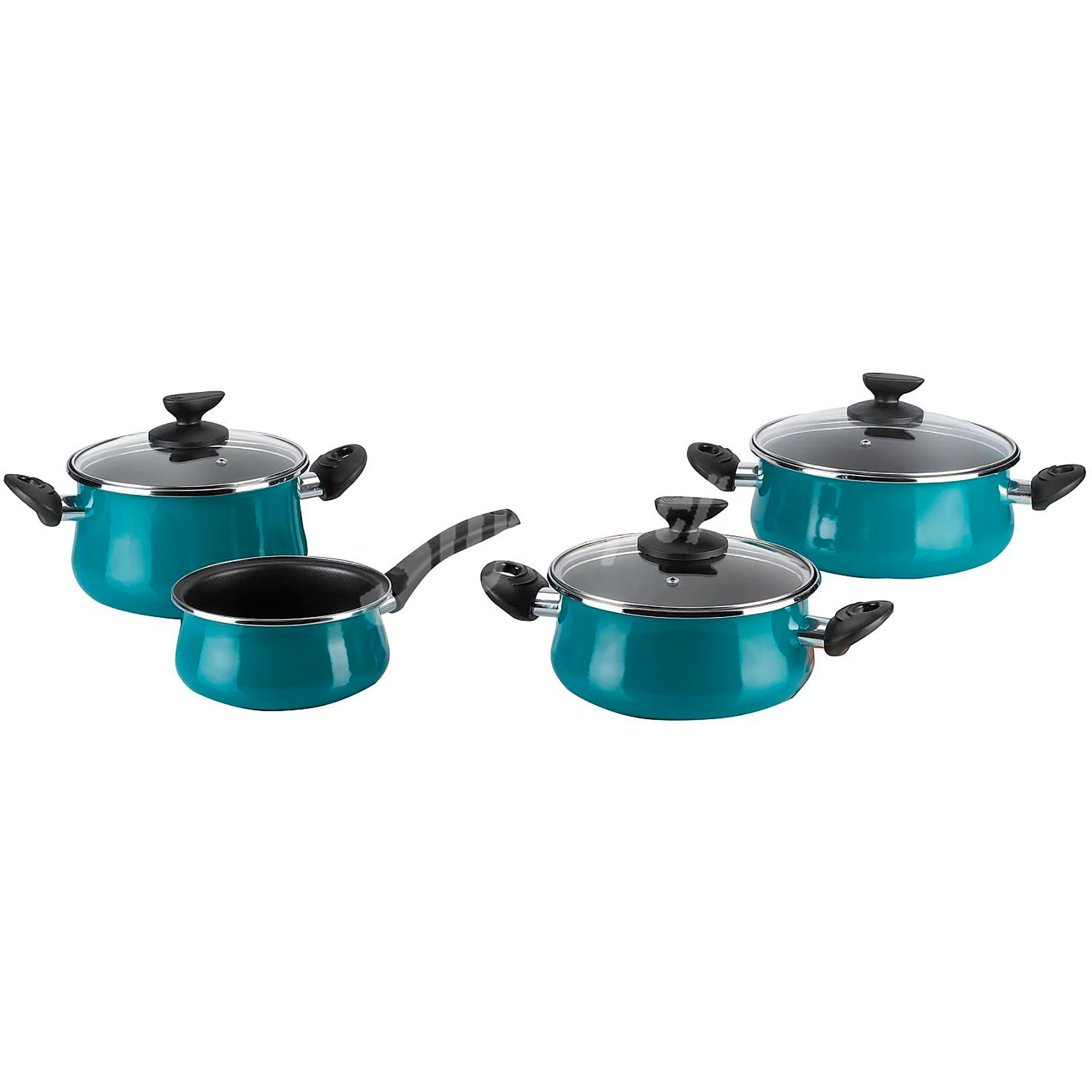 Batería de Cocina Inducción 7 Piezas, Antiadherente Bicapa libre de PFOA, Tapas Cristal Acero