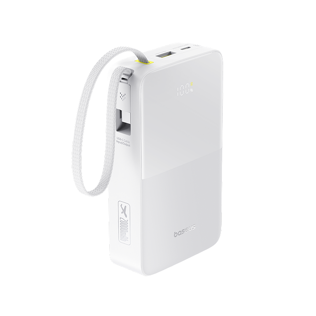 1x USB-C (PD 20 W, entrada/salida), 1x Lightning (cable integrado, 20 W)