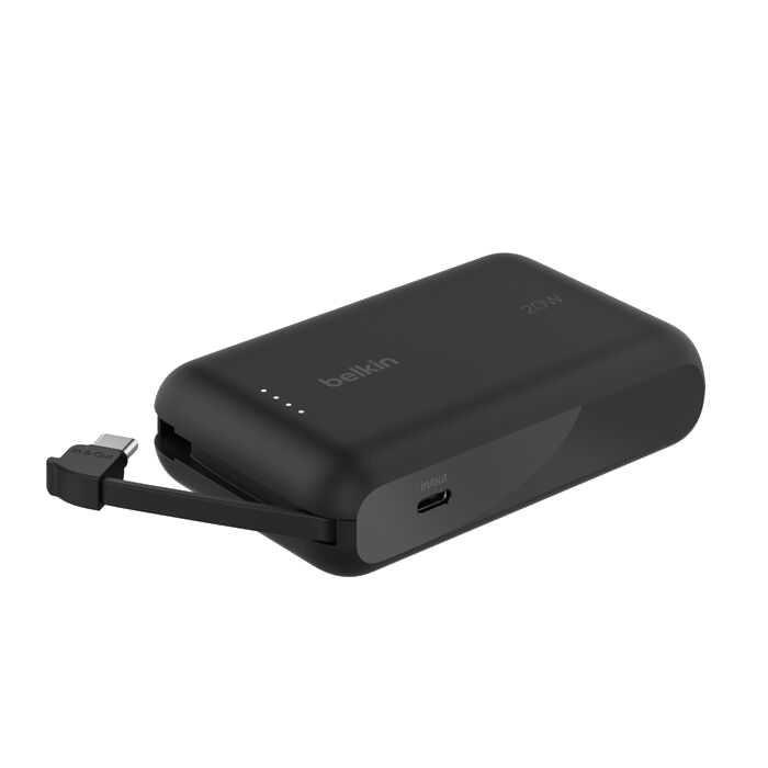 Powerbank - Belkin BPB021hqBK, 10000 mAh, 1x USB-C, Cable Integrado, Carga Rápida, 20W, Negro