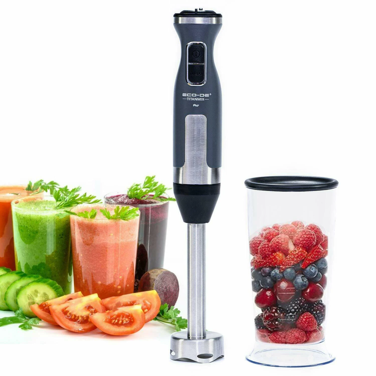 Batidora de mano, Batidora trituradora, Mango ergonómetro, Pie de acero inoxidable, Batidora con brazos trituradores