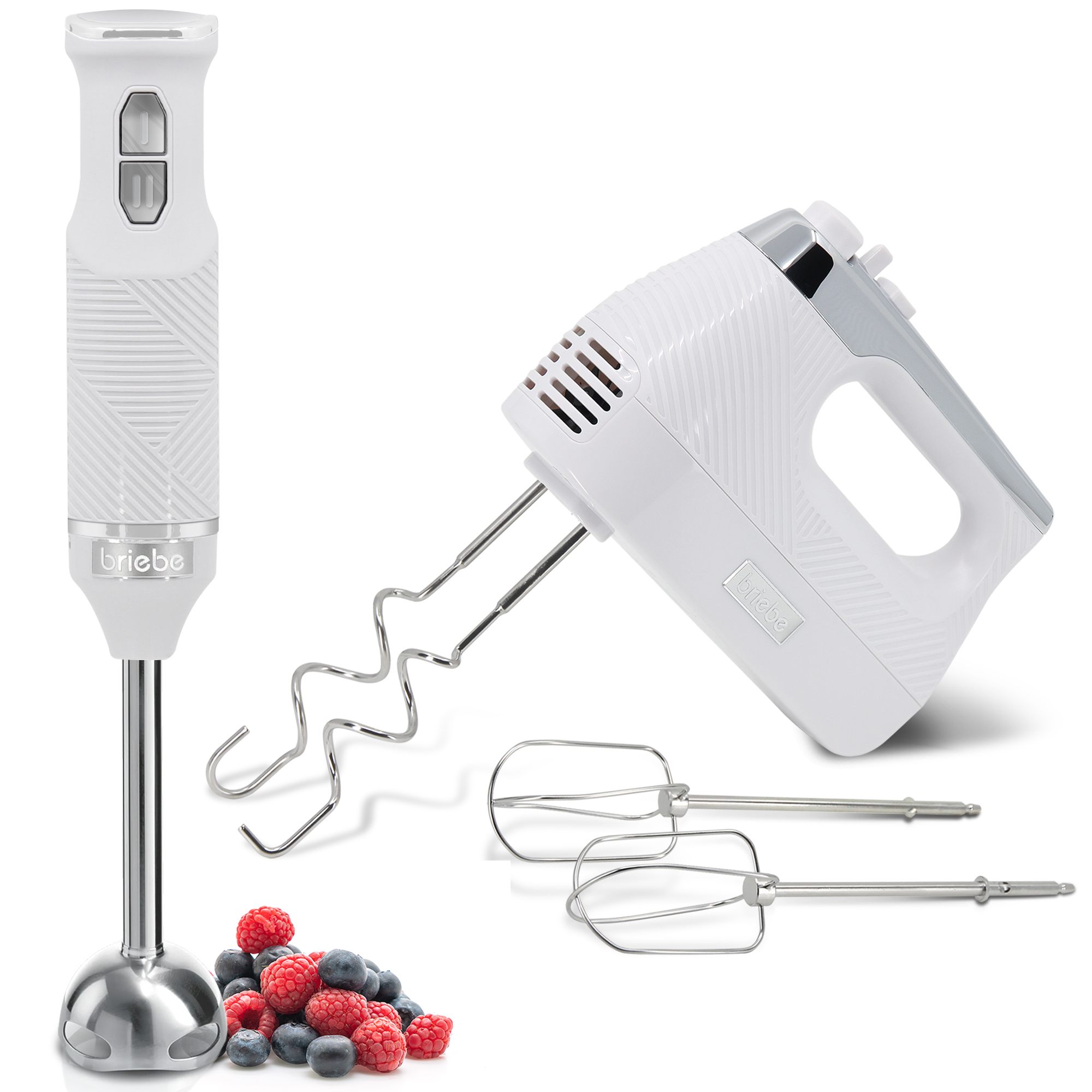 • Batidoras de varillas de mano: Sirven para mezclar y amasar en cualquier recipiente, pero a diferencia del modelo anterior, no trituran. Podemos encontrar modelos con una o dos varillas eléctricas. Están especialmente pensadas para la repostería.