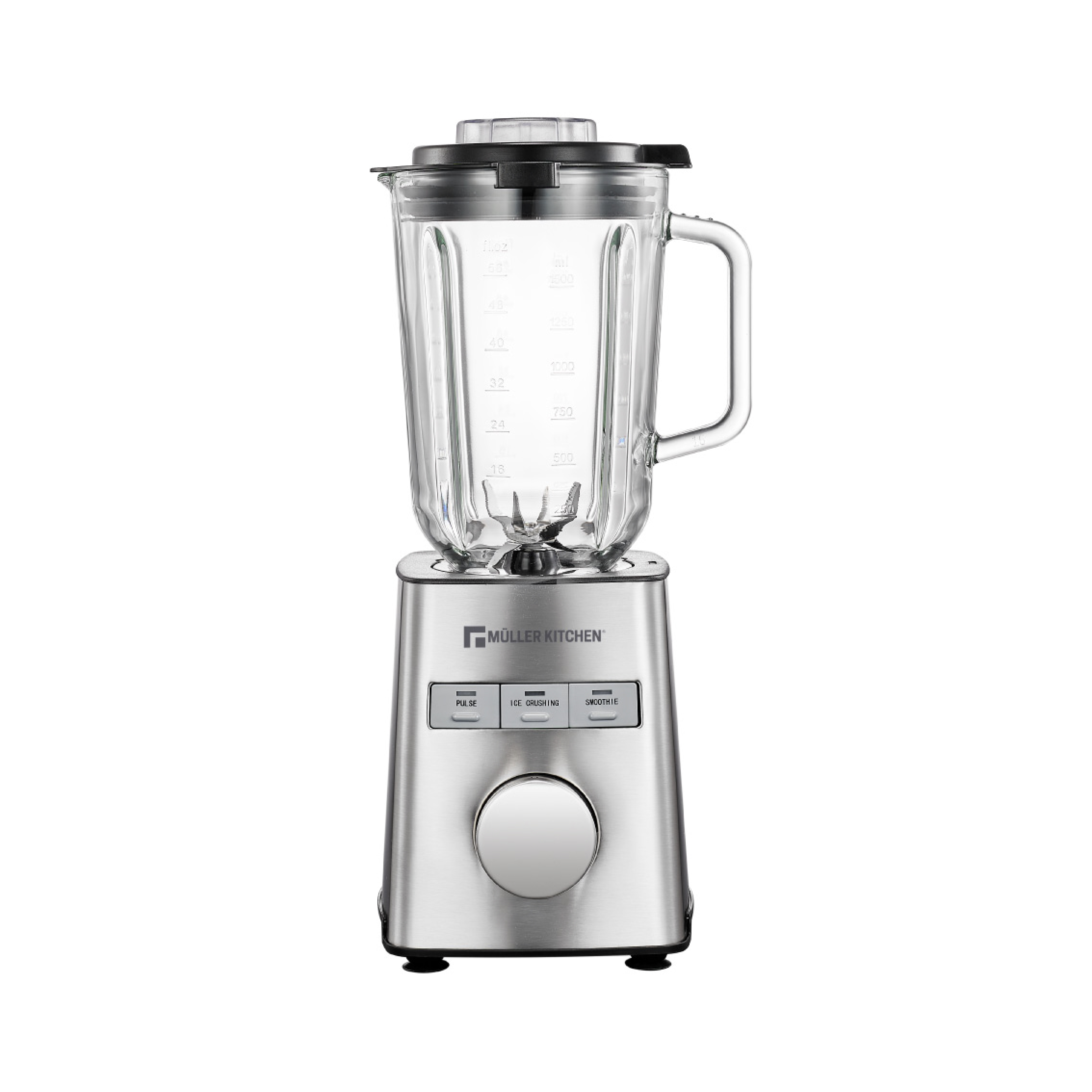 Jarra de cristal termorresistente. 6 cuchillas de acero inoxidable desmontables para fácil limpieza
