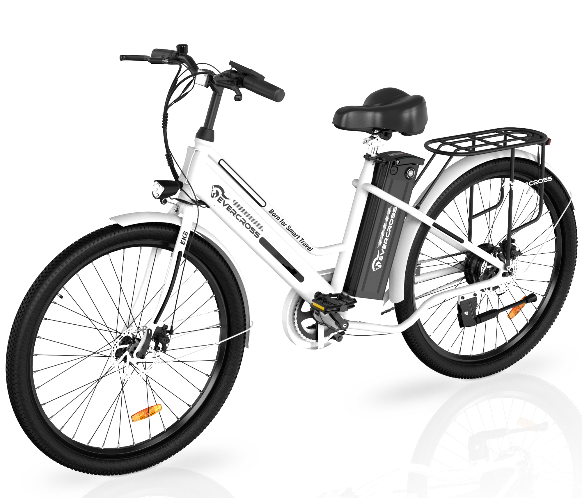 Bicicleta de ciudad - EVERCROSS TECH Bicicleta eléctrica EK8S de 26 PULGADAS, 2 modos de conducción, motor de 250 W, Bicicleta eléctrica, 250W, Blanco
