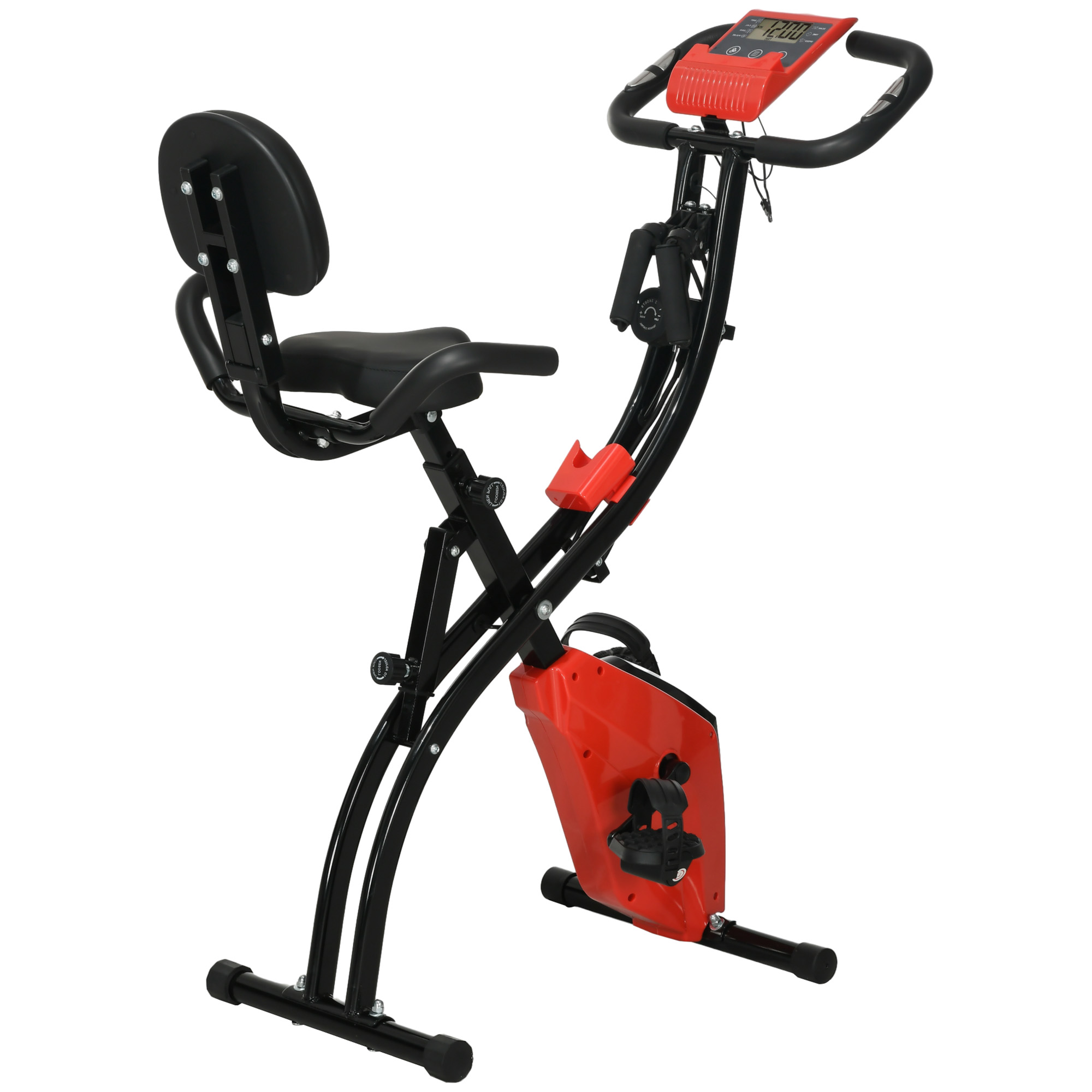 Bicicleta Estática - HOMCOM plegable, pantalla LCD, regulable, 97x51x115 cm, Rojo