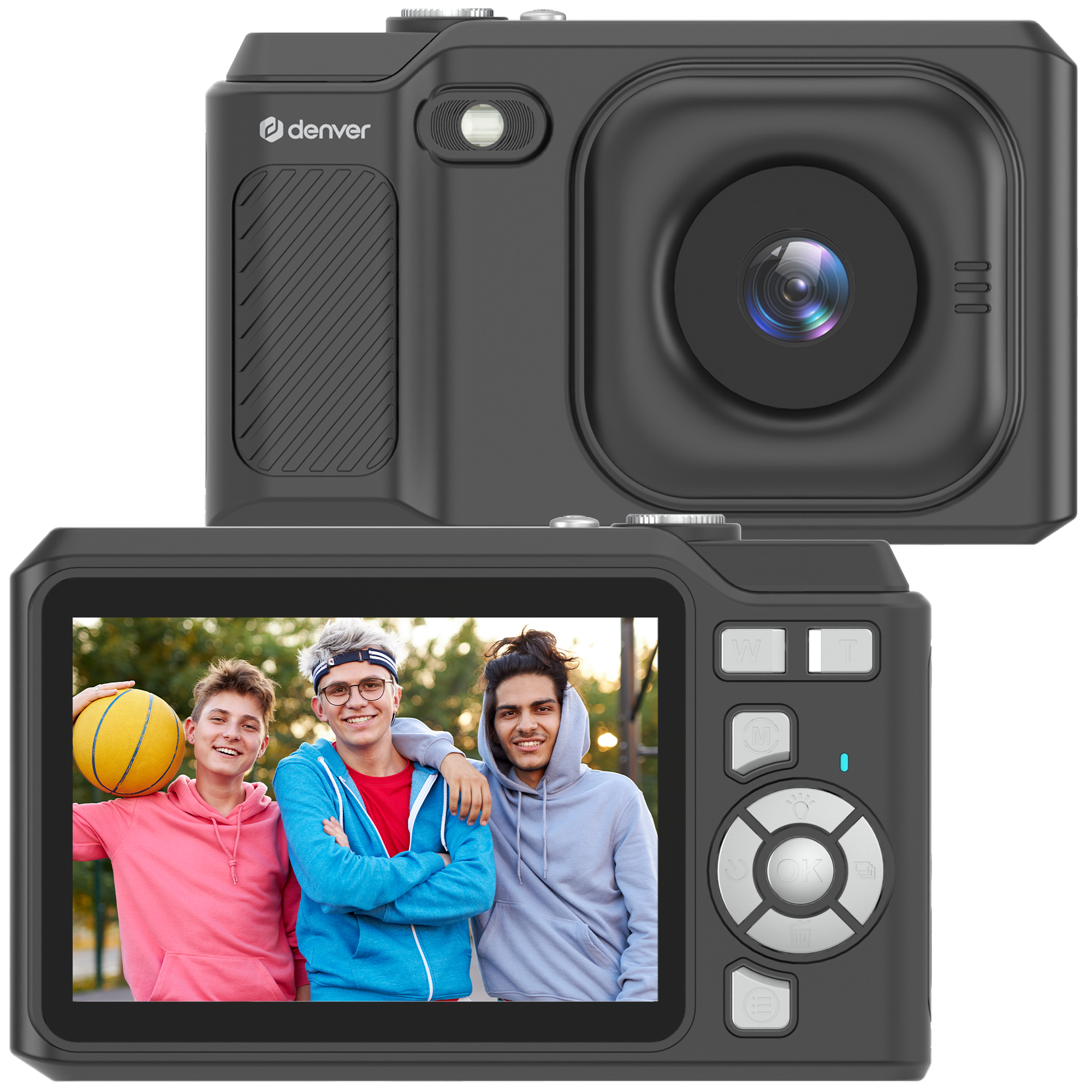 1x Cámara video digital, 1x Cable de carga USB a micro USB, 1x Bolsa de transporte, 1x Muñequera para colgar.