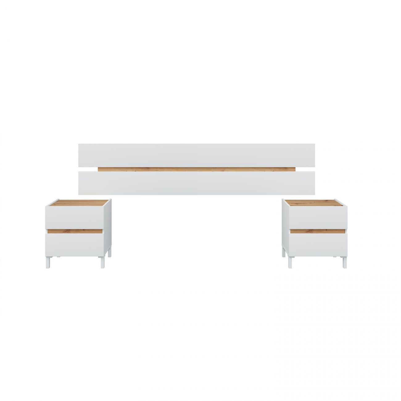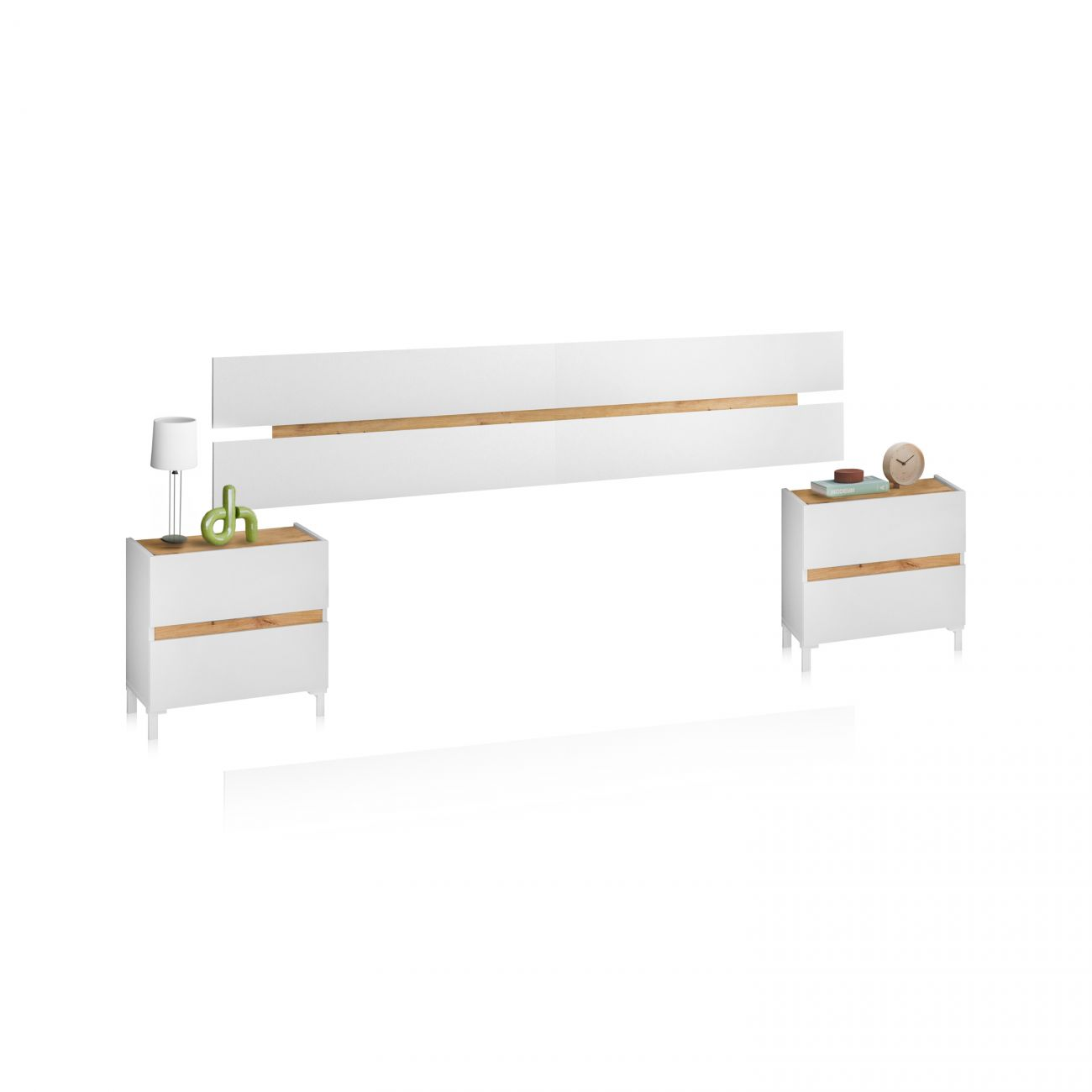 Cabecero - DUEHOME New Dreams, Melamina, guías metálicas, patas en ABS, Blanco Artik (Blanco Mate) – Roble Alaska