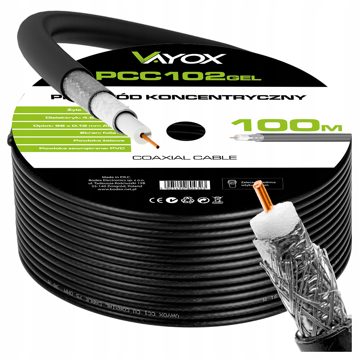 Cable coaxial - PCC102GEL-100 100 m, VAYOX, Negro