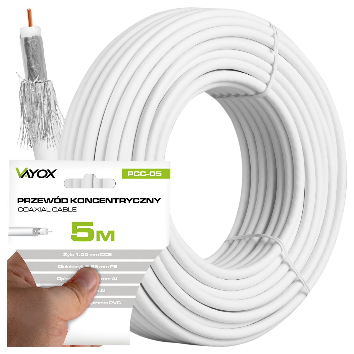 Cable coaxial - RG6U 5M PCC-05 VAYOX, Blanco