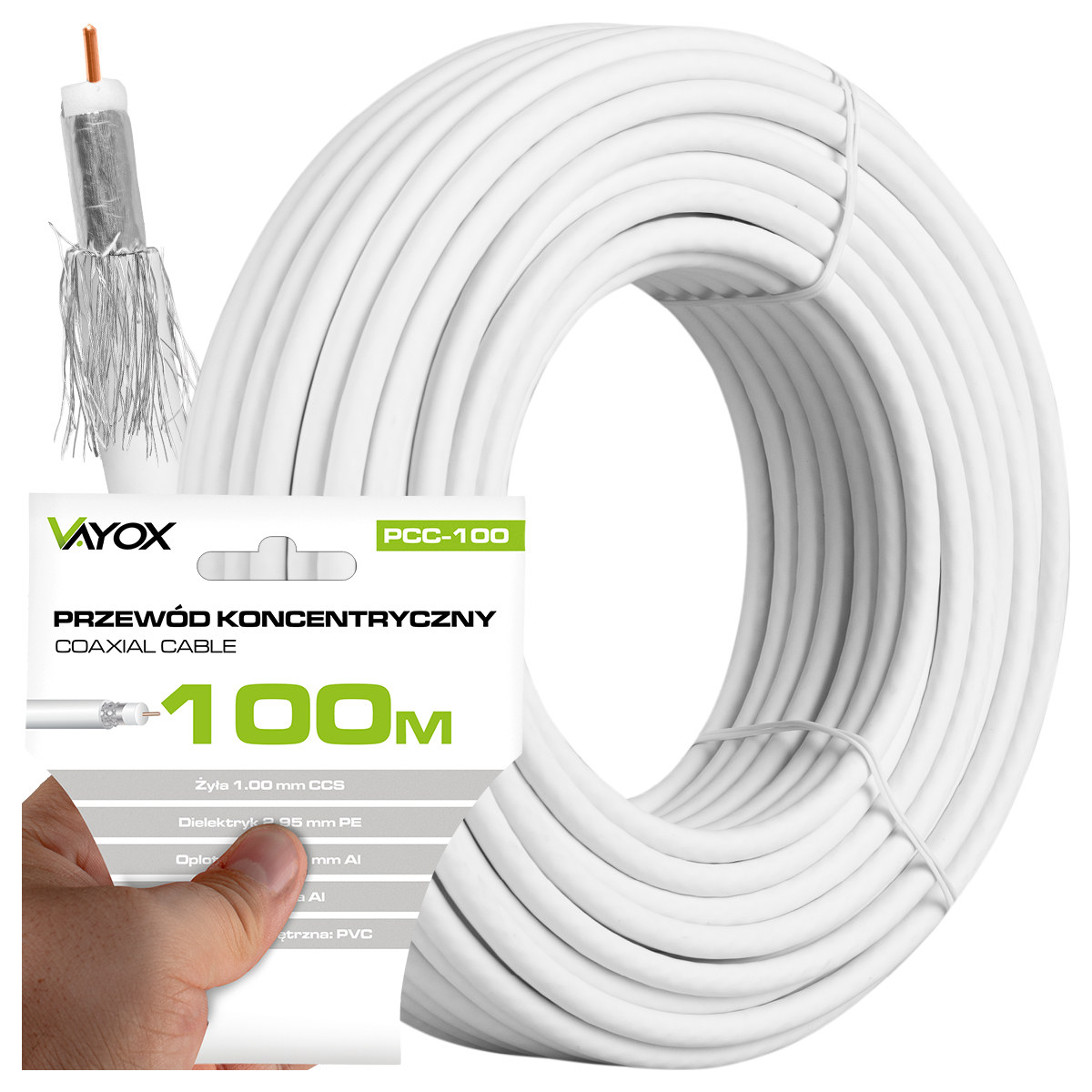 Cable coaxial - RG6U 100M PCC-100 VAYOX, Blanco
