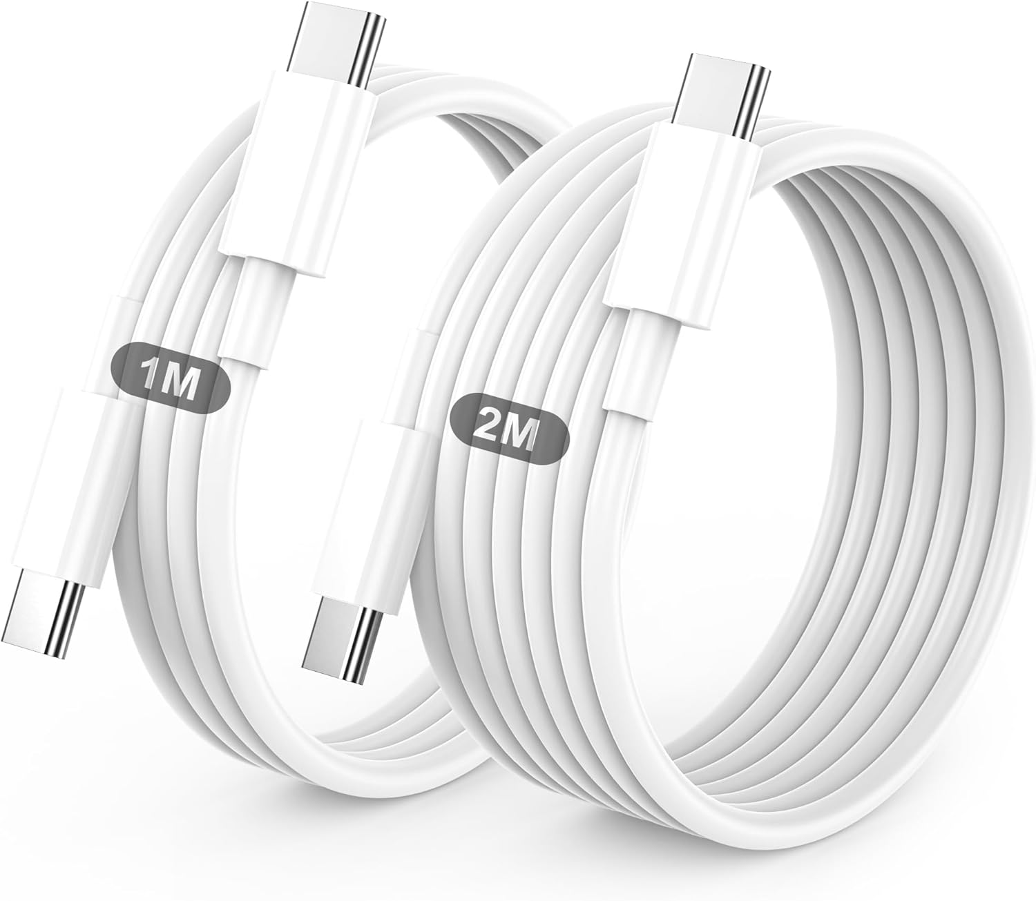 Este cable USB-C es compatible con una amplia variedad de dispositivos, incluyendo iPhone 15, 16 y 17, así como MacBook, MacBook Pro, MacBook Air e iPad Pro/Air. Es extremadamente duradero, resistente al desgaste y torsión, y ha superado más de 30.000 pruebas de flexión sin perder rendimiento. Incluye dos longitudes (1 m y 2 m) para mayor comodidad en casa, oficina o coche. Se incluyen dos cables USB-C blancos. Atención al cliente disponible en caso de problemas
