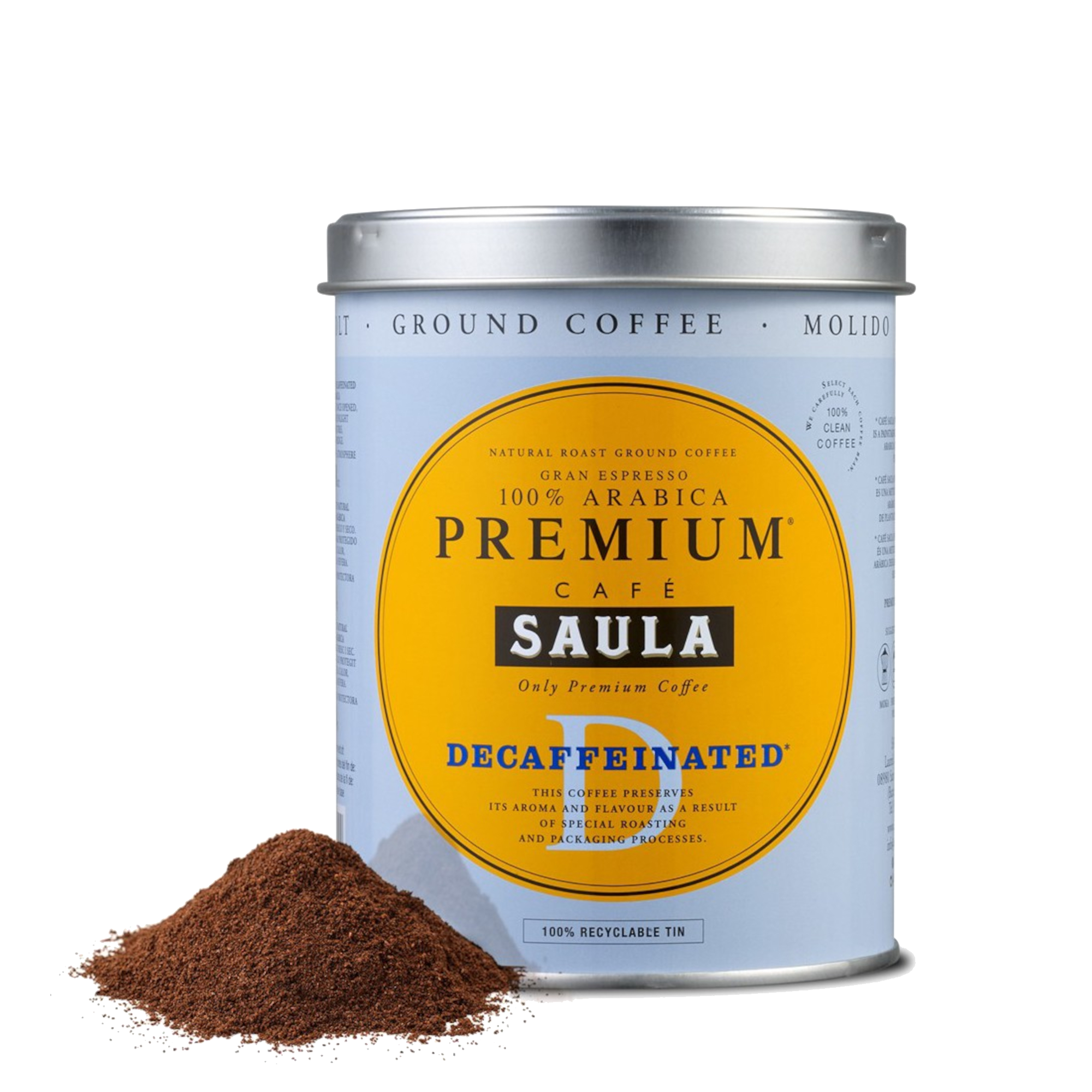 Café molido - Saula Premium Descafeinado, Arábica, 250 g