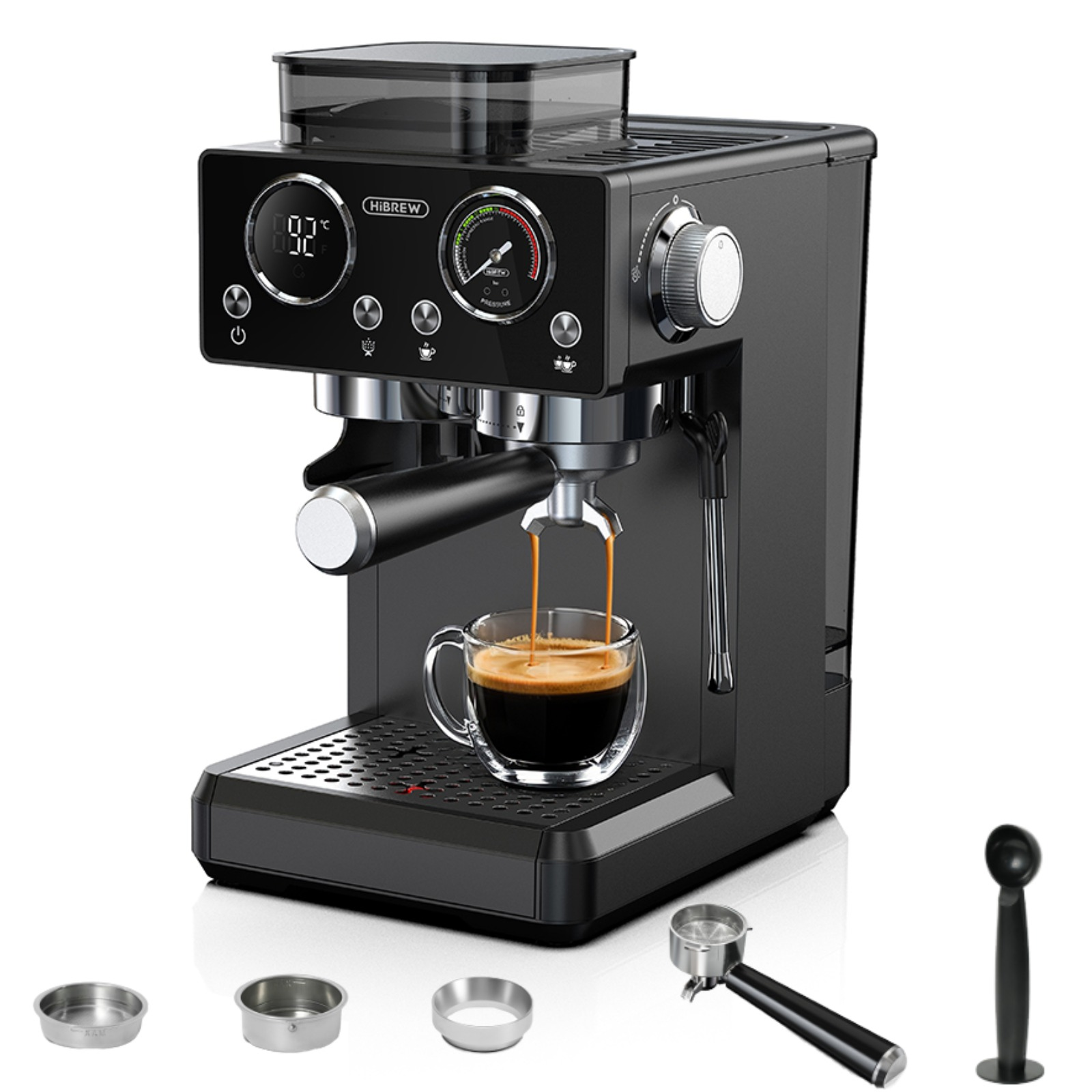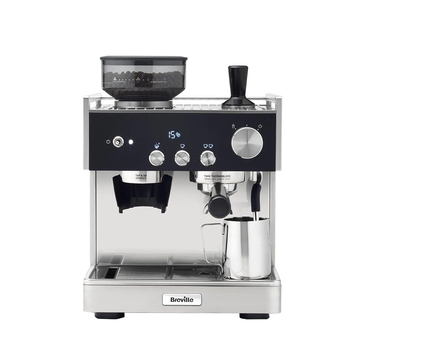 Cafetera express - Breville Barista Signature, 15 bar, 2 Tazas, 1600W, Café en grano, Inox/Negro