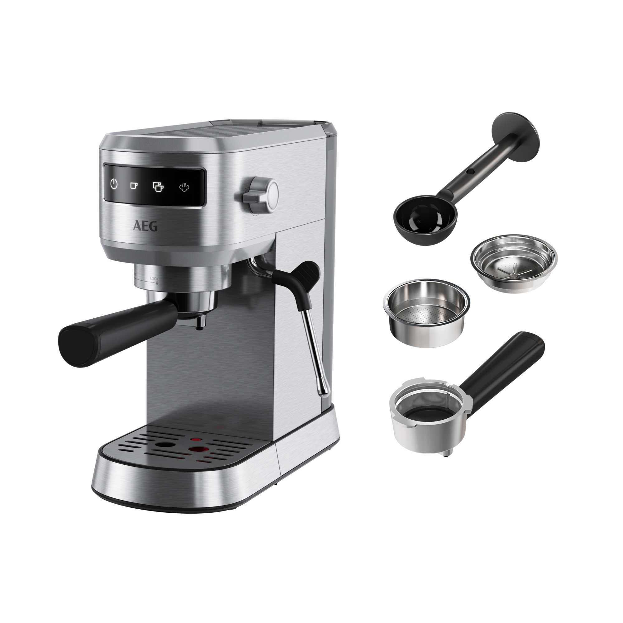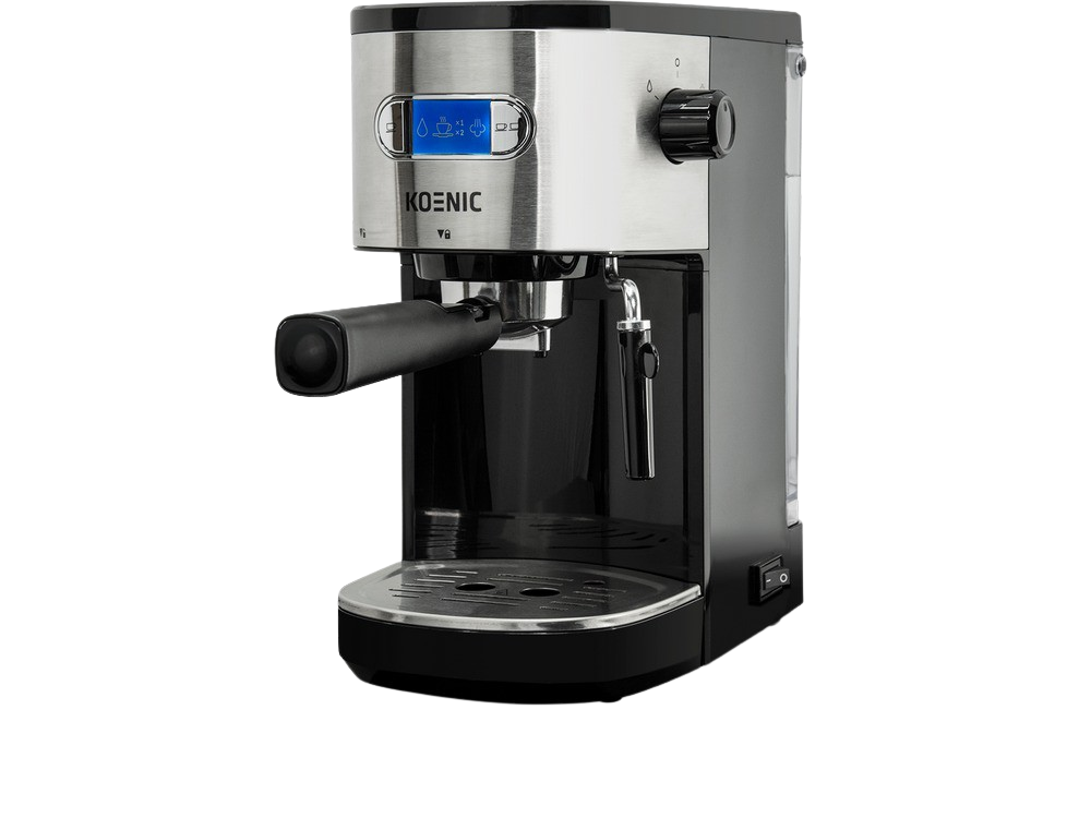 Cafetera express - KOENIC KEM 2320 M, 20 bar, 1450W, 2 tazas, 1.2 l, Inox/Negro