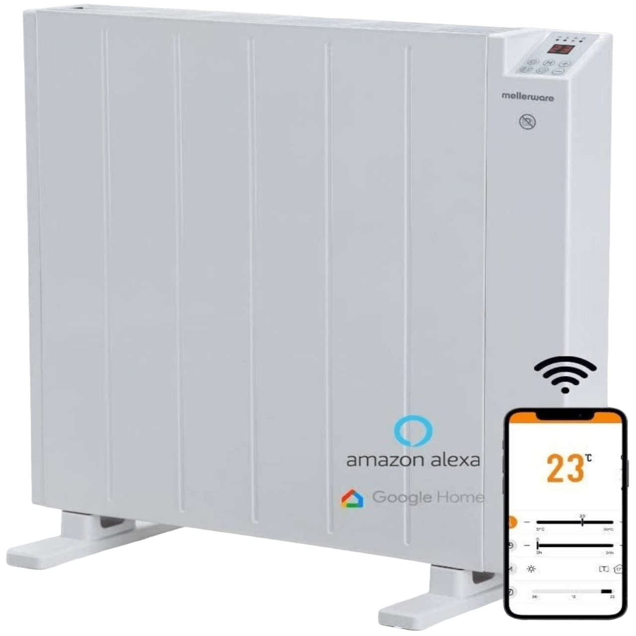 Emisor Térmico - MELLERWARE Comfy! WIFI Medium, Dispositivo antivuelco, Compatible con Alexa y Google Home, 1200 W, 6 elementos, Blanco
