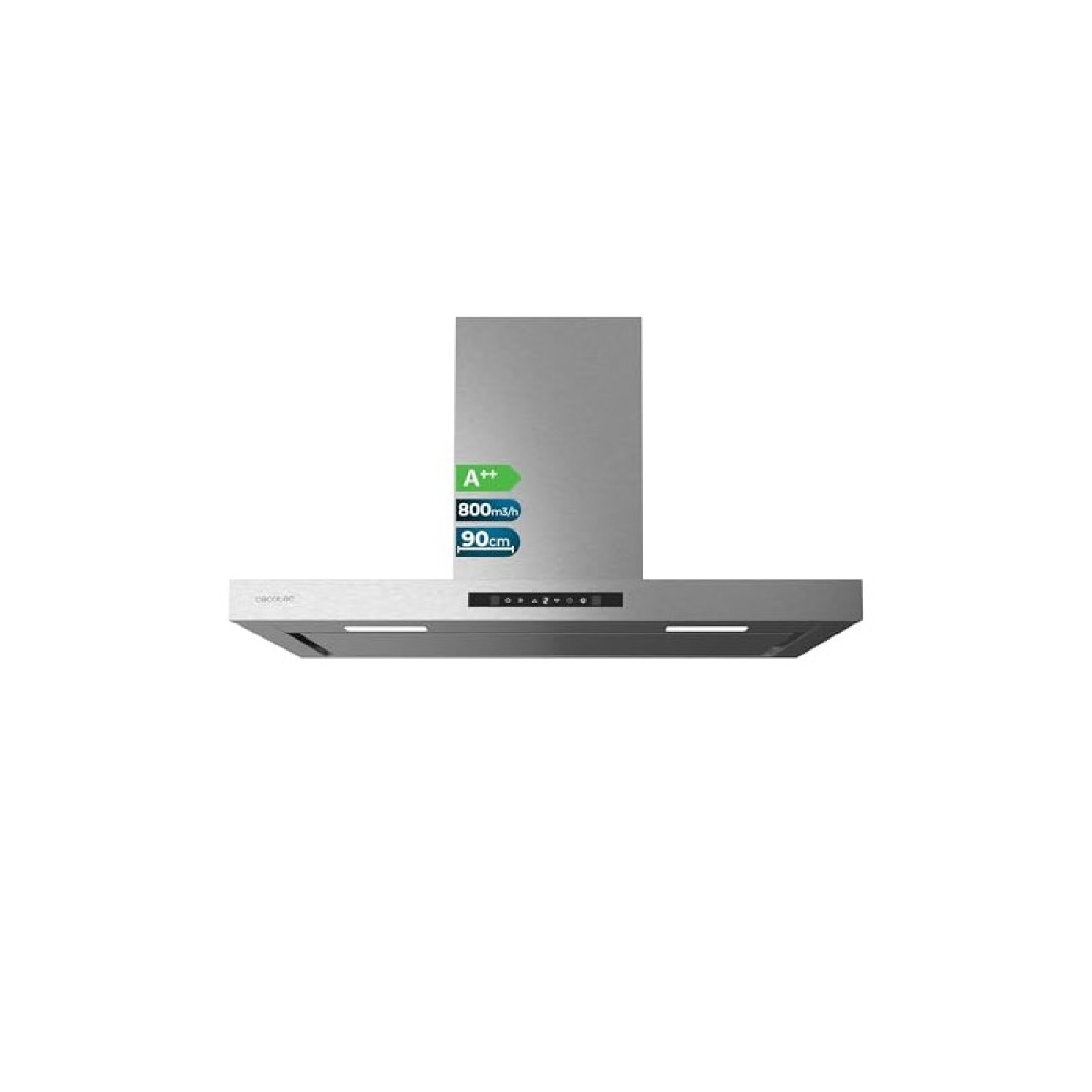 Campana convencional - CECOTEC Bolero Flux TT 908000 Slim Glass Black A++, 3 velocidades, 800 m³/h, 90 cm, Multicolor