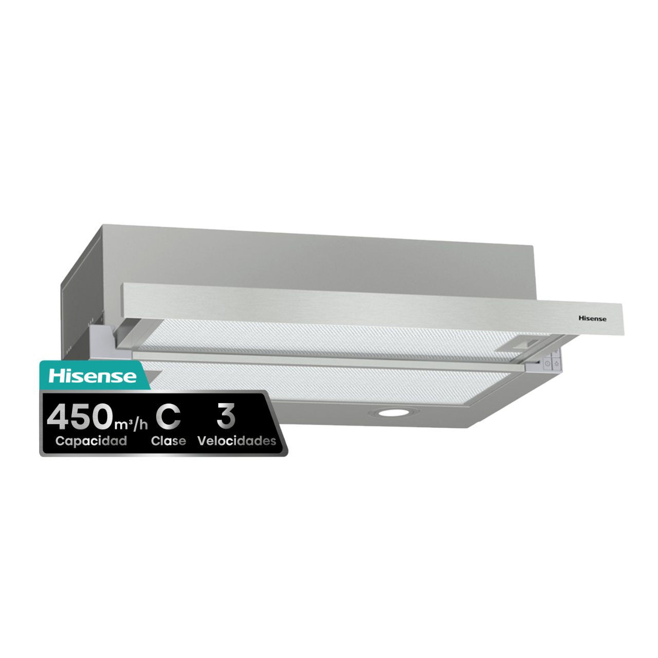 Campana telescópica - Hisense CH6TL4BX, 3 Velocidades, 450 m³/h, 60 cm, Inox