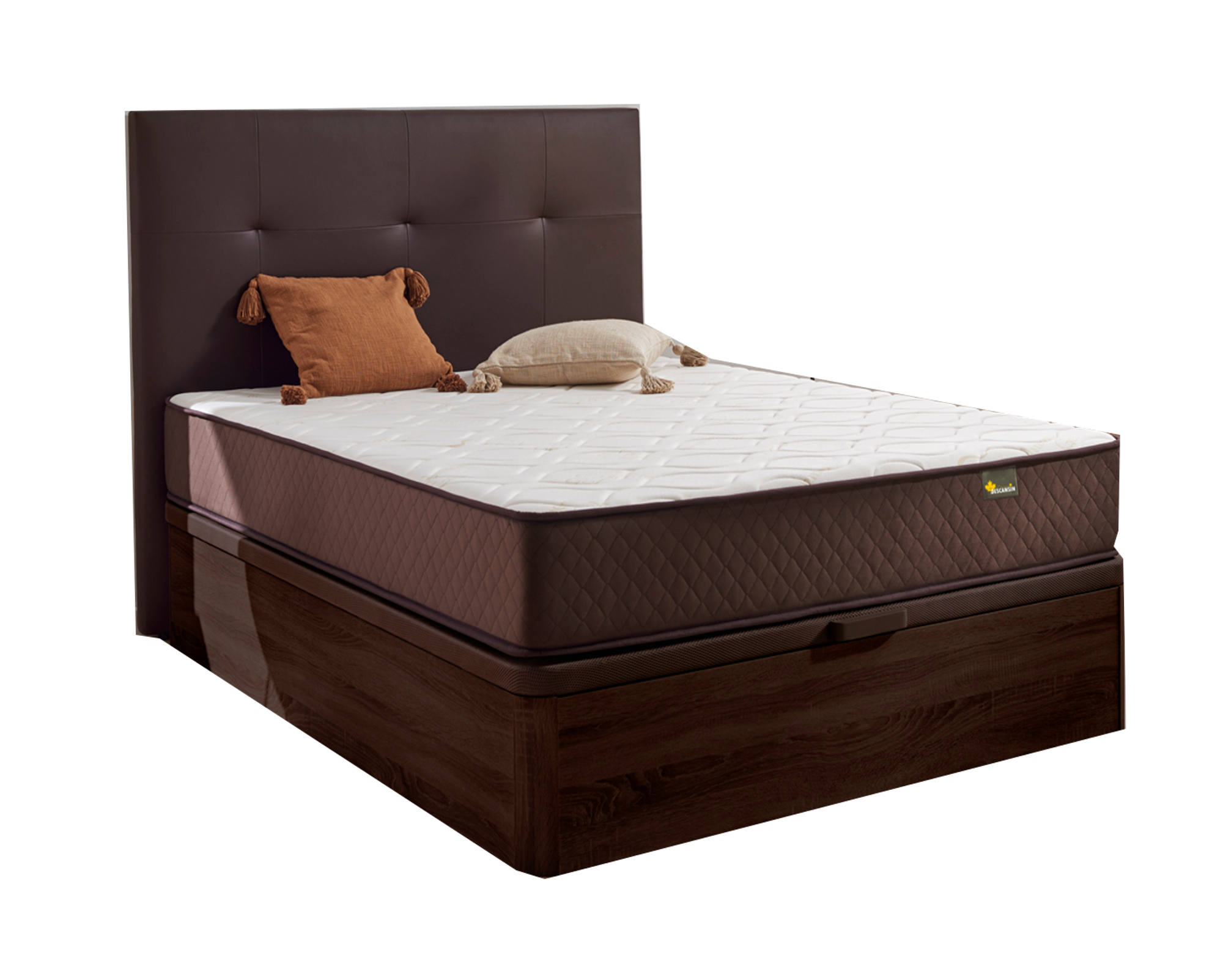 Pack Colchón + Canapé + Cabecero - DESCANSIN Premium wengue, 150 cm x 200 cm, Espumación alta densidad, Wengué