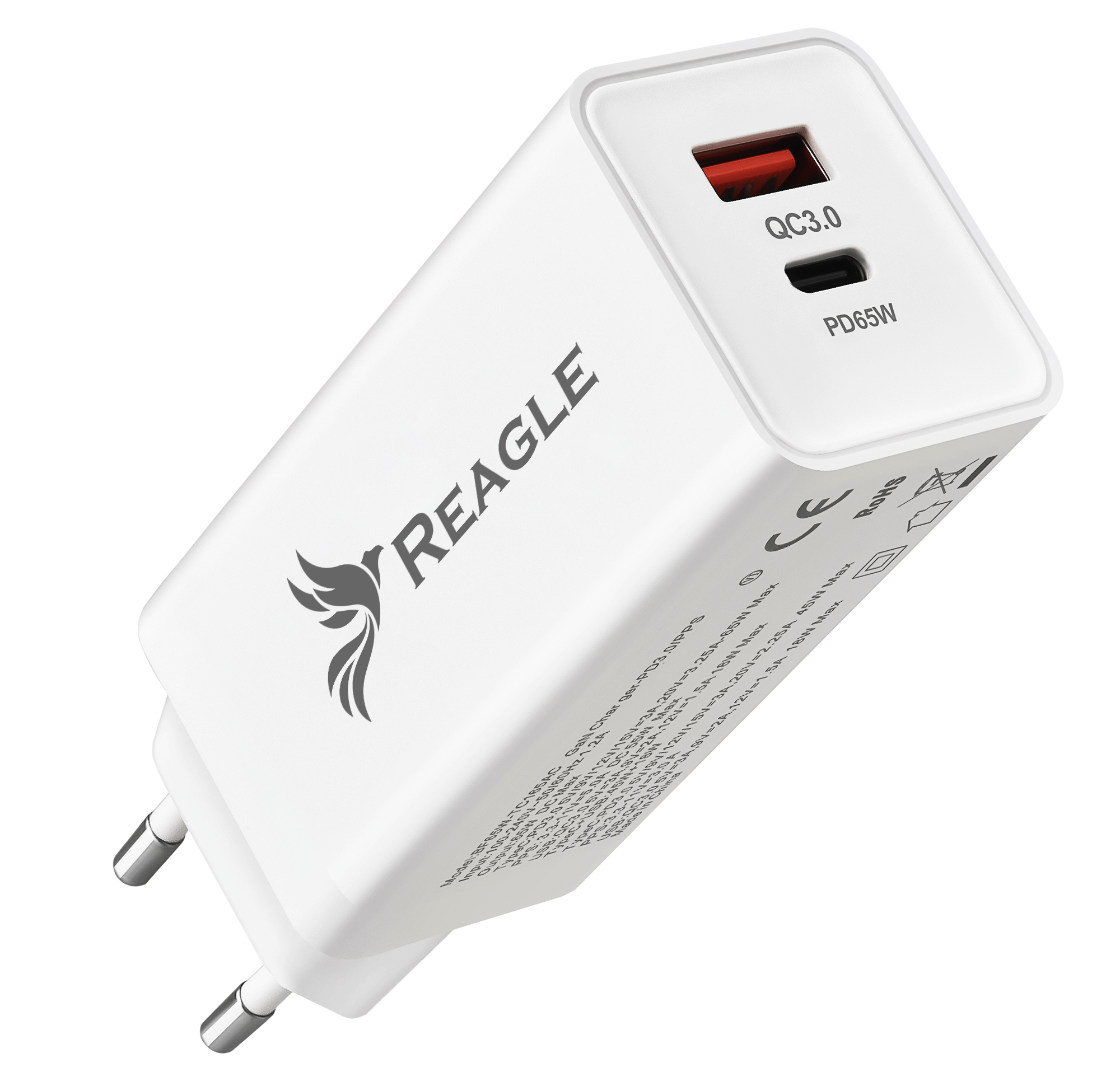 Cargador para portátil - REAGLE 4x USB C 4x QC 3.0 para LAPTOP IPHONE MAC 100W, 8 puertos, Negro