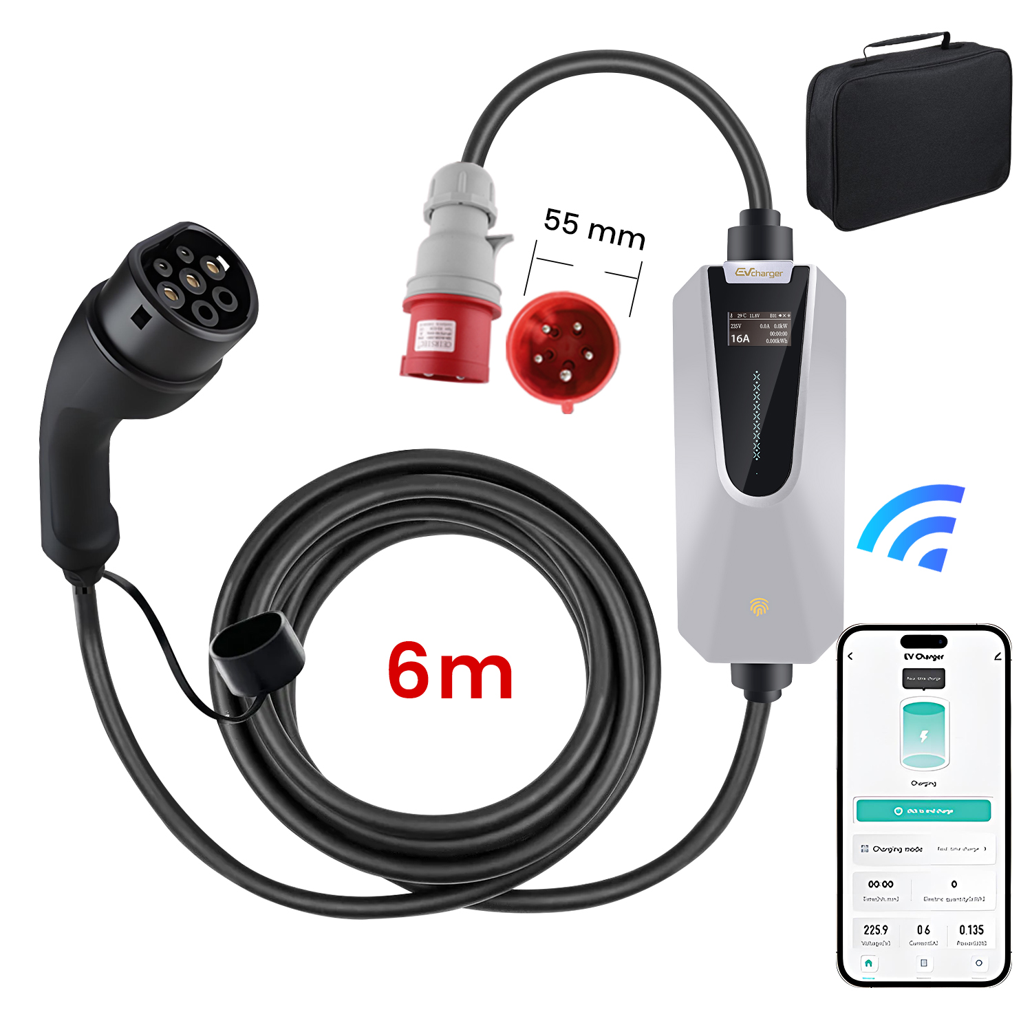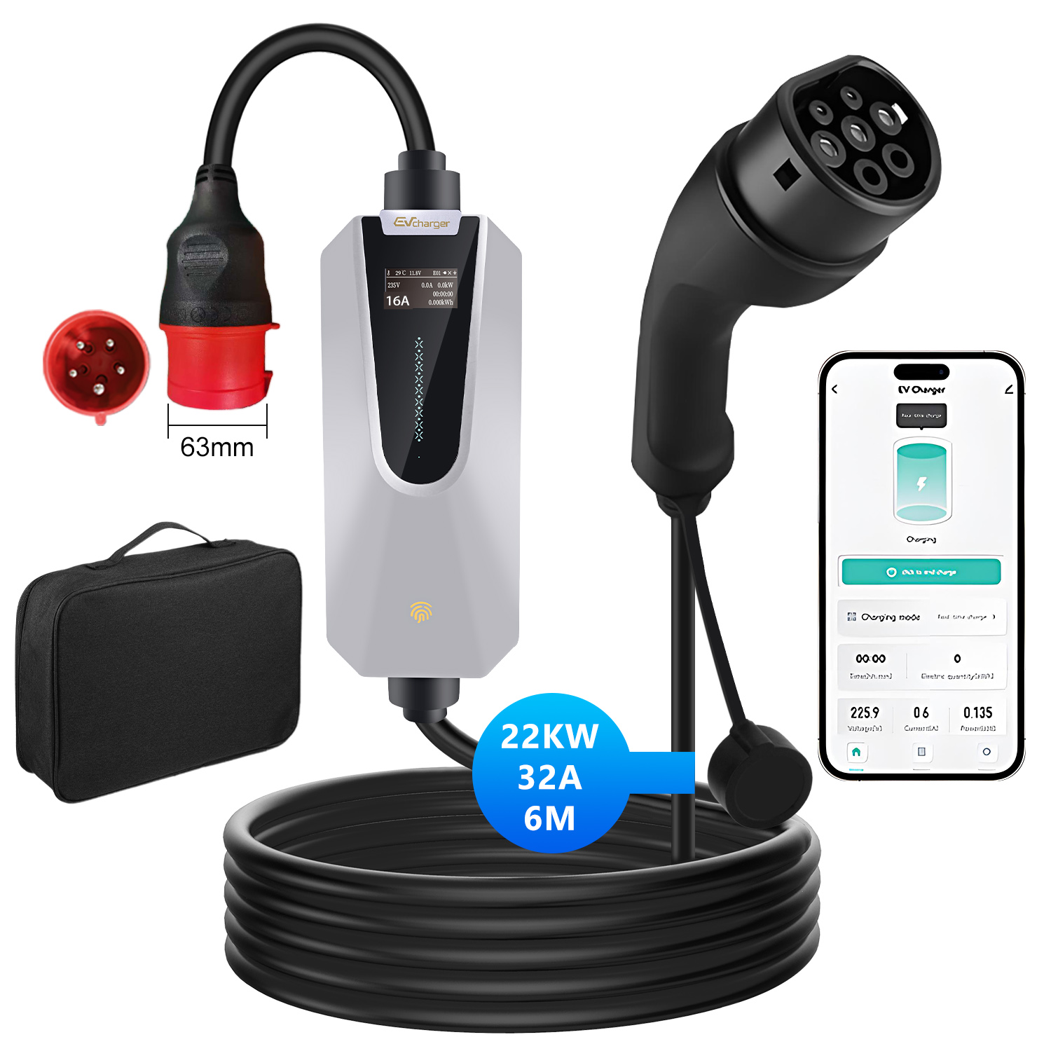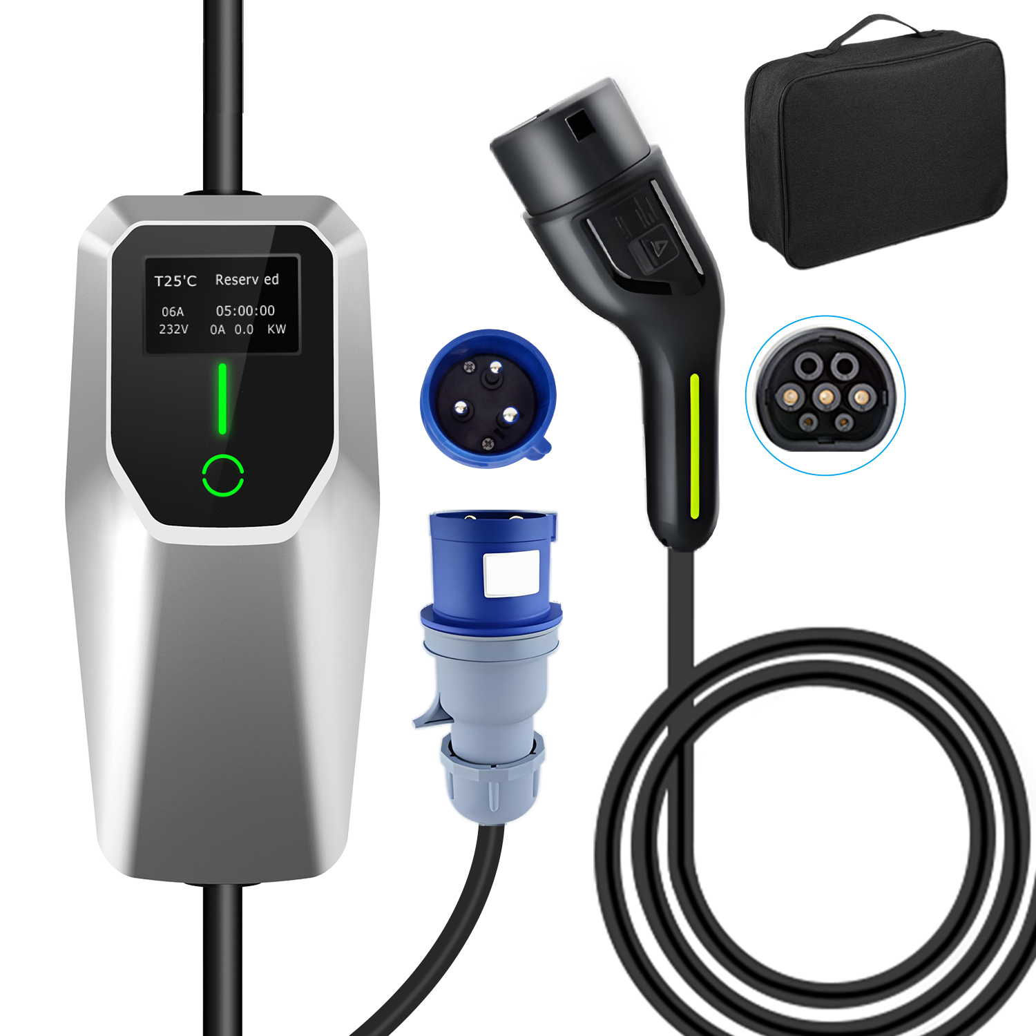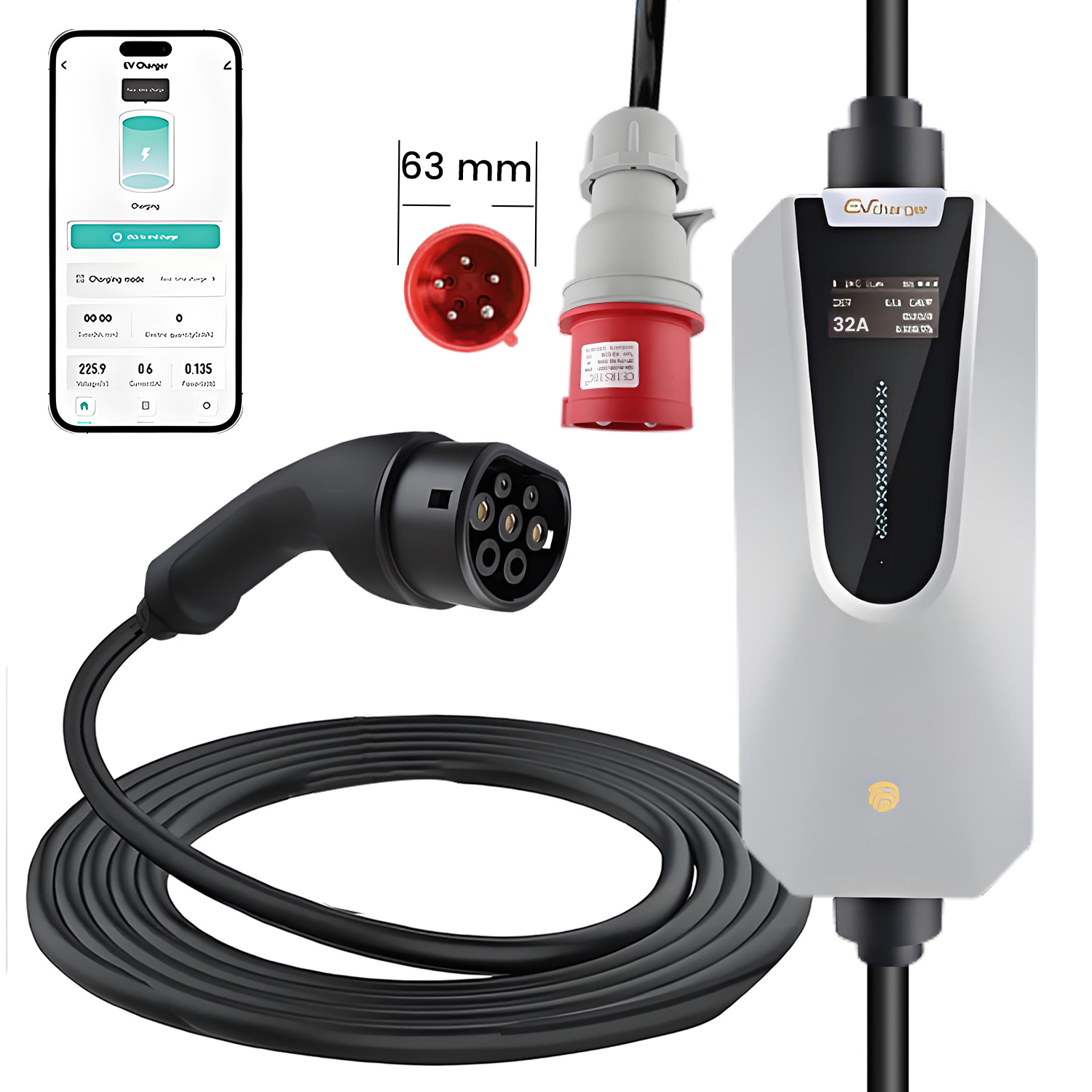 1xcargador coche eléctrico monofásico, 1xsensor gestión dinámica potencia, 1xmanual