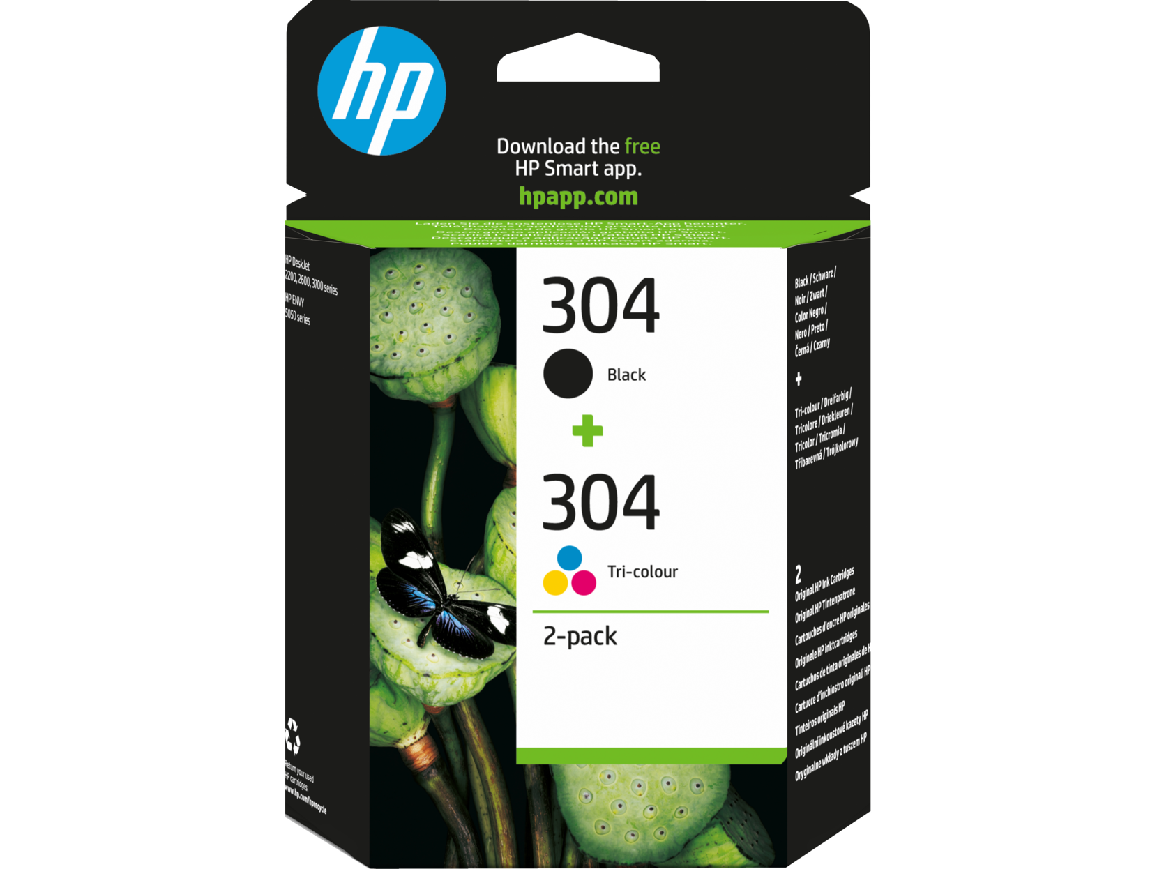 Cartuchos de Tinta - HP 304 Negro+Tricolor, 120 páginas tinta negra, 100 páginas tinta de color, HP Planet Partners