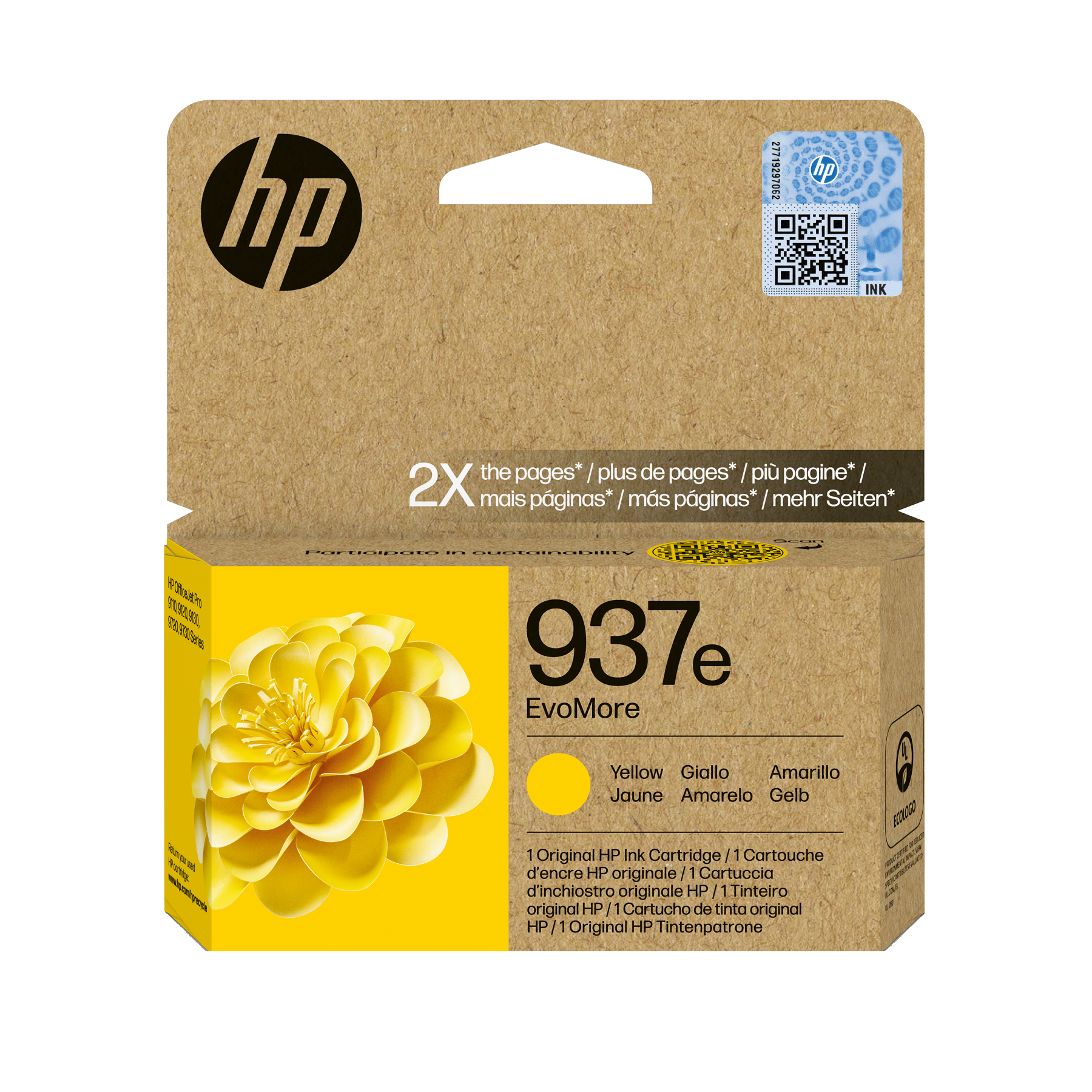 Cartucho de tinta - HP Evo More 937e, Hasta 1650 páginas, Certificado CarbonNeutral®, Amarillo