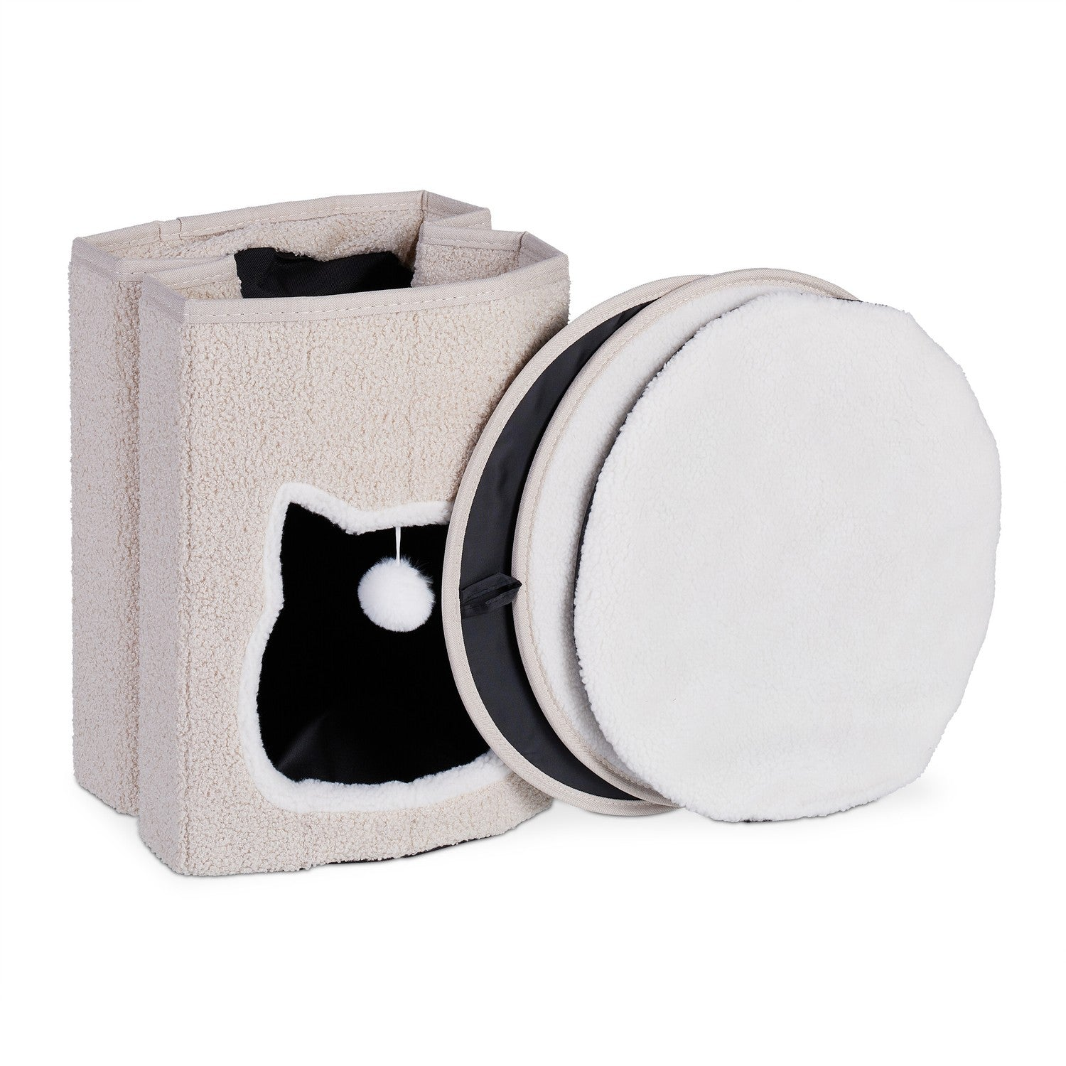 1x Cueva para gatos, 1x Cojín extraíble, 1x Juguete colgante